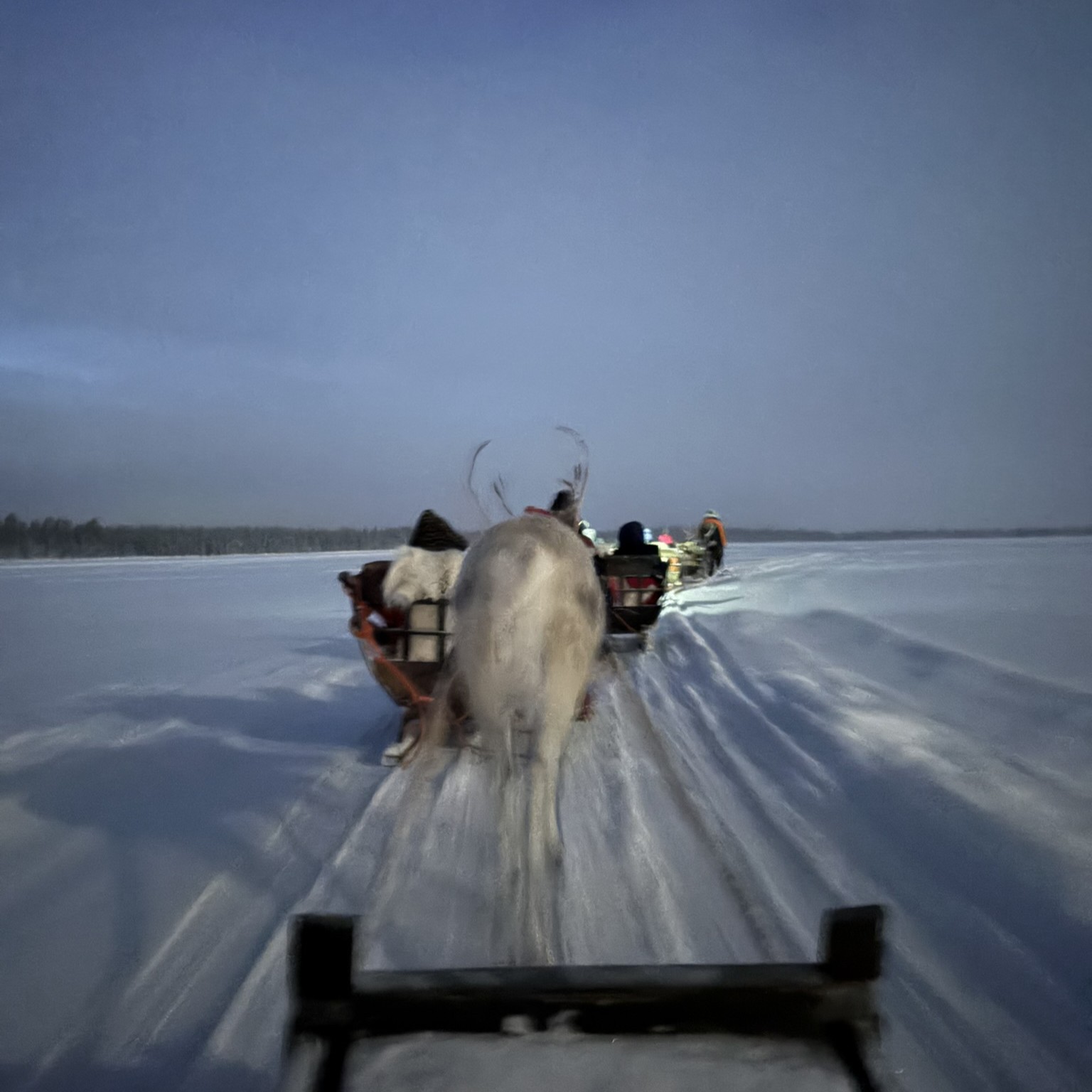 - My most surprising experience was just how much I enjoyed the snowmobile trip. This is one I thought would be fun to do, but had no real high expectations. We started just before sunrise and sped through the forest out to a frozen lake where we saw sunrise on one side and the wolf moon rising on the other before warming up with hot chocolate in the cutest cabin on the edge of the lake. My eyelashes froze, my cheeks were red raw from the cold, but it was worth every second to be freely speeding through an Arctic wonderland, joined by a couple of reindeer trying to keep up with us.