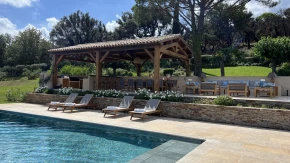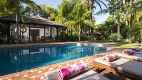 • Stylish, spacious living areas, often with multiple bedrooms, private pools, hot tubs, outdoor dining spaces, and lush gardens.