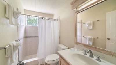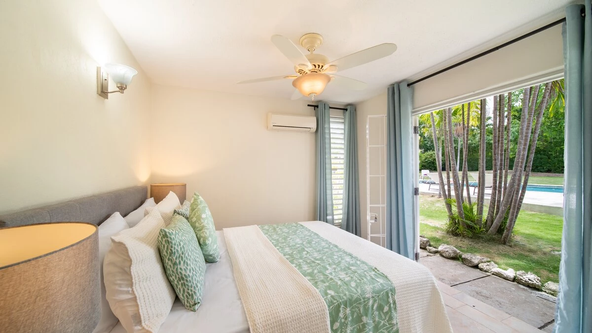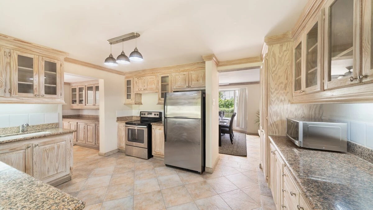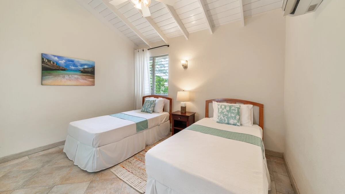 Inside, the villa is a beautiful blend of modern comfort and island charm. The living areas are spacious and inviting, with plush furnishings that call for lazy afternoons with a good book or lively evenings with loved ones. The kitchen is a cook's dream, fitted with top-notch appliances that make whipping up tropical feasts a breeze. When it's time to rest, the bedrooms are cool, quiet retreats. The master suite boasts its own bathroom, while the other rooms share well-appointed facilities. Each space is designed for ultimate relaxation, ensuring everyone wakes up refreshed and ready for another day in paradise.