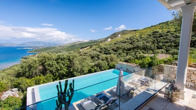 A wonderfully comfortable luxury villa in Lefkada, with magnificent sea views from its secluded seaf... -