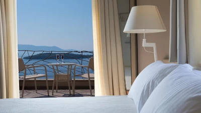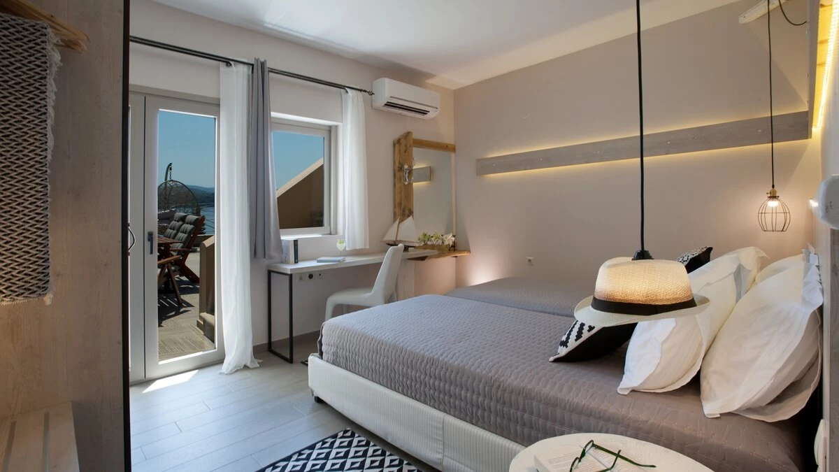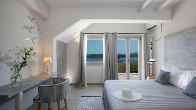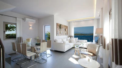 A stylish Zakynthos hideaway with four en suite bedrooms, infinity pool, and panoramic sea views, pe...