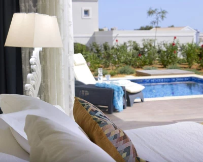 Discover beautifully crafted rooms and suites designed for complete comfort. Choose from serene deluxe rooms, spacious family suites, maisonettes or premium options with private or shared pools. Each space combines calming colours, thoughtful details and contemporary style to create a restful haven throughout your stay.