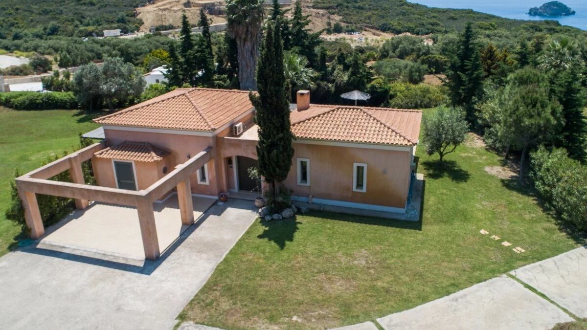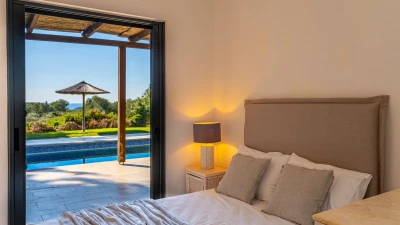 A stylish Zakynthos hideaway with four en suite bedrooms, infinity pool, and panoramic sea views, pe...