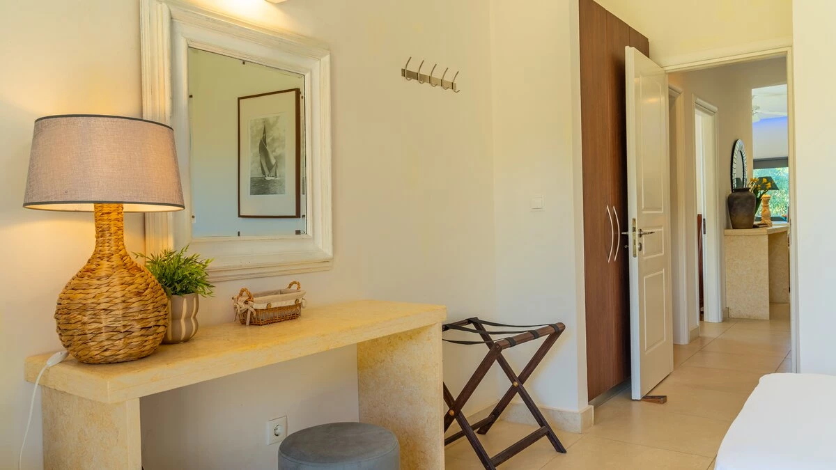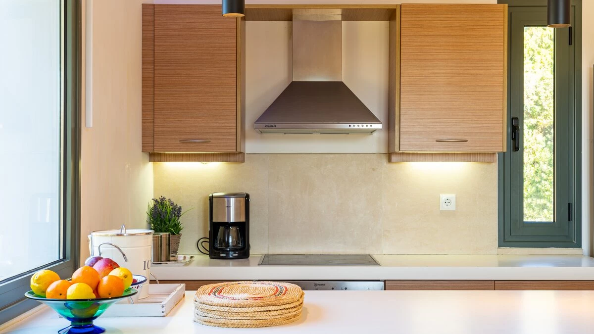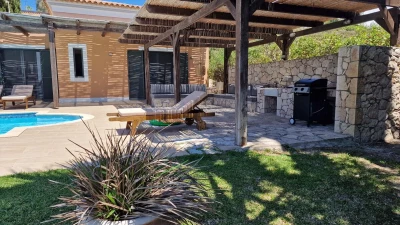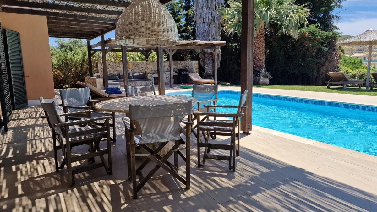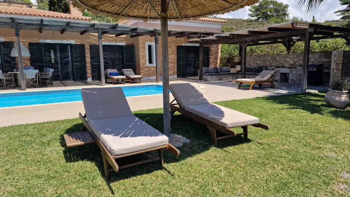 Adjacent to the pool there is a lovely shaded area with barbecue, sink, table and seating. Antigone seems purpose built for calm serenity, yet it is also well positioned for easy access to the islands attractions. Klismata cove is a short but steep walk away. Spartia is a five minute drive from the villa, with its beach and charming maze of streets, housing a handful of shops and tavernas, and the nearest family-run taverna, just up the hill, will deliver food to your door. Water sports at Lassi are fifteen minutes away.