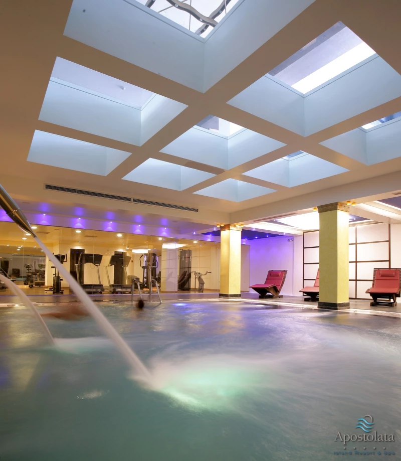 Apostolata Island Resort & Spa is situated on a hillside which slopes gently to meet the azure sea waters and is located just under three miles from the village of Scala.