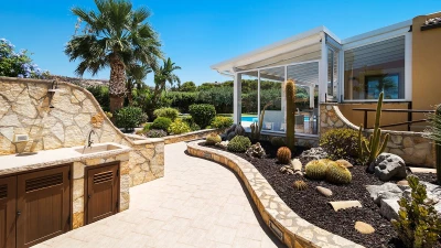 Life is meant to be enjoyed outside at Artemisia, where a large shaded terrace is furnished for lounging and dining, while the 12m pool offers the perfect place to cool off after sunbathing; an outdoor kitchen with a built-in BBQ offers the ideal spot for preparing those al fresco lunches.