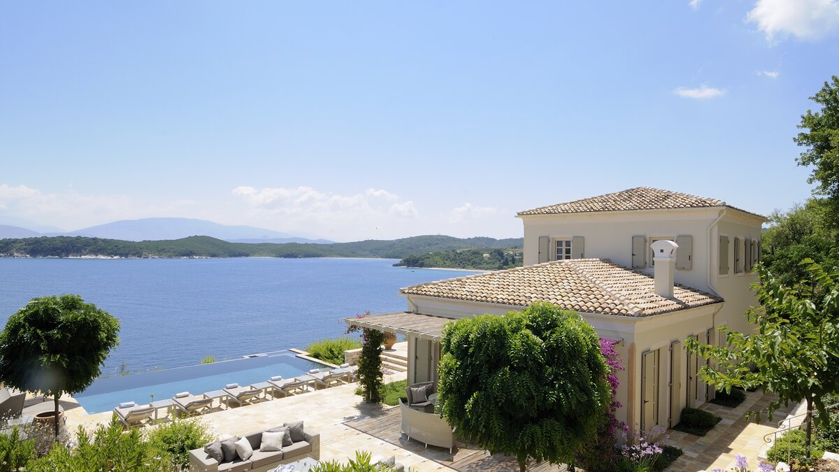 With its beautiful infinity pool raised just above the sea, this luxury villa in Corfu has huge sunny terraces overlooking the water. Peaceful, private, close to Kassiopi’s attractions.