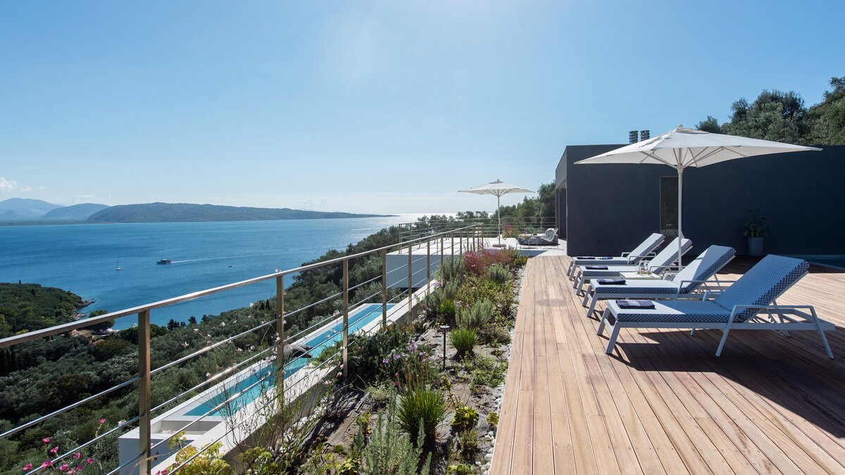 A wonderfully comfortable luxury villa in Lefkada, with magnificent sea views from its secluded seaf... -