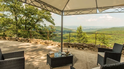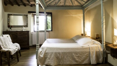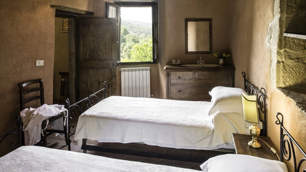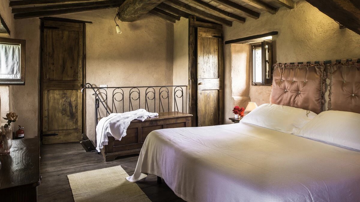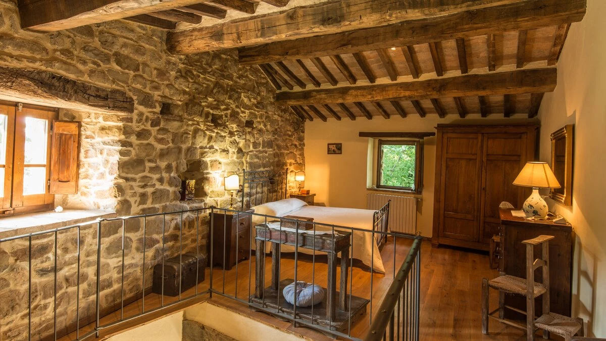 A unique and intriguing holiday venue, this is a rare opportunity to enjoy the exclusive use of an entire historic hamlet. The remarkable ‘borgo’ (or little village), considered one of the most beautiful in Italy, basks amid verdant hills, within easy reach of medieval towns in both Umbria and Tuscany. Sympathetically restored by its owner Renato, it comprises six separate buildings, clustered in tree-shaded grounds with many different spots with ample outdoor furniture in sun and shade for reading or play. In various sizes for two to five guests, each is individually styled to retain its character while adding modern comforts, and all have a private furnished garden terrace. The accommodation layout is straightforward. The 'hamlet houses' of Casa del Contadino, Il Forno, Casa del Prete are all set in a horseshoe shape. Casa del Castagno with panoramic furnished terrace is set slightly apart. Casa di Venere and The Tower are at the other end of the hamlet. The thousand year old Tower villa boasts a rooftop terrace, with spectacular views unchanged by the centuries, and a rather contemporary hot tub from which to enjoy them.