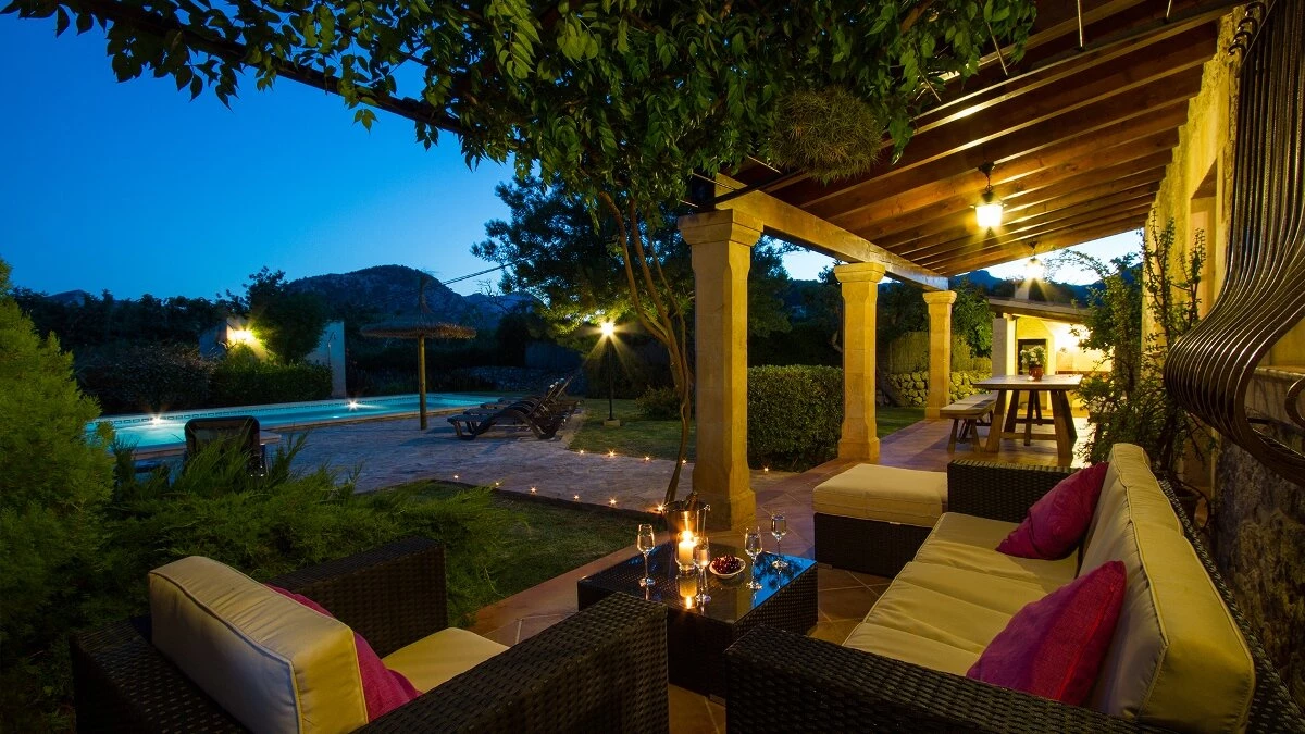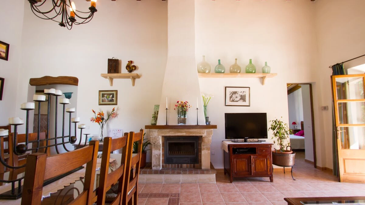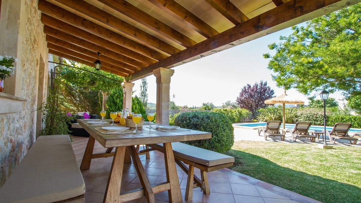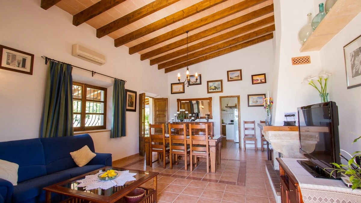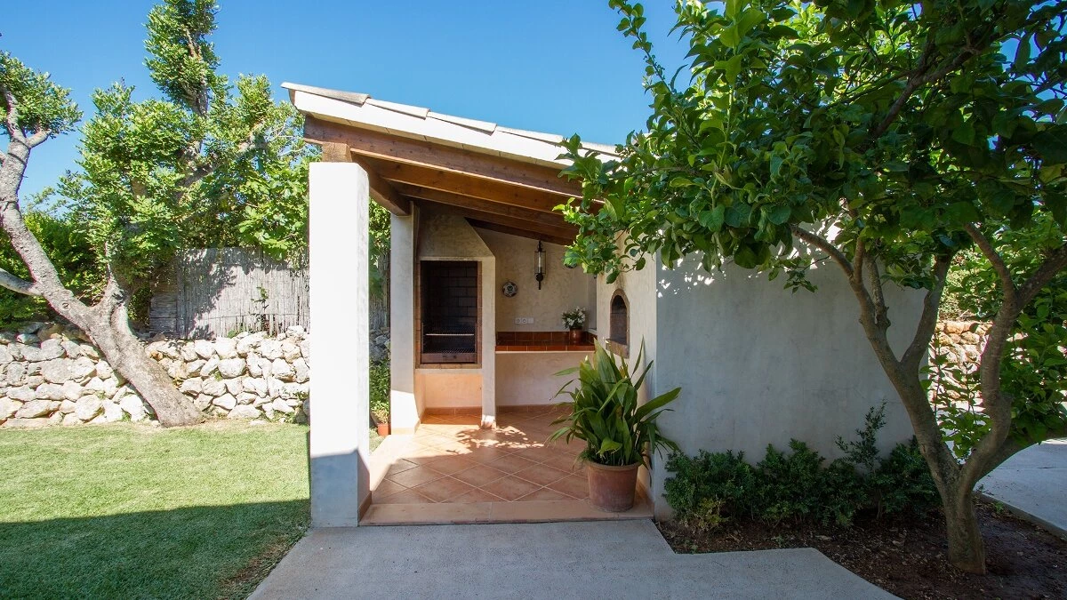 In a secluded countryside location, yet just 3km from Pollensa and 6km from Puerto Pollensa, this very popular villa is a fine choice for a family holiday. Set in gardens of 6000m ², the villa is generously proportioned and thoughtfully equipped, indoors and out, encouraging open-air living with a built-in barbecue area and ample shaded, vine covered terraces furnished for dining and relaxing. Inside there is an airy high ceilinged sitting room with dining area opening to the terraces, a separate modern kitchen with breakfast area and a pantry and utility room. From one end of the dining room, there is access to the pretty, spacious, bright master bedroom with en suite bathroom. A hallway from the dining area leads to two further twin bedrooms with intricate artwork, one with an en suite bathroom and one with an adjacent full bathroom. The pool is set among spacious sun terraces and there are ample lawned gardens at the rear of the property. Early booking essential.