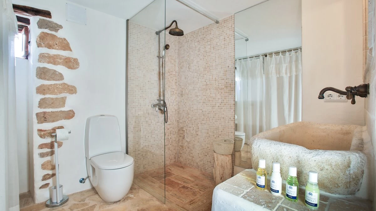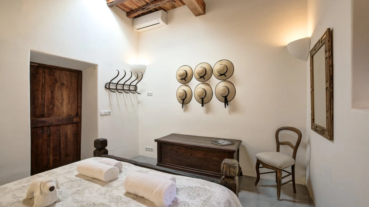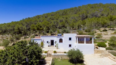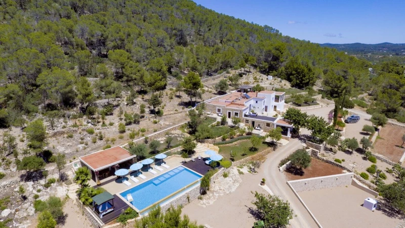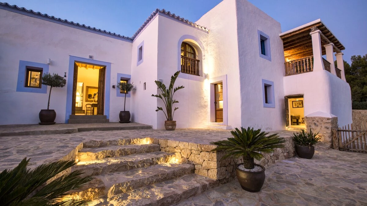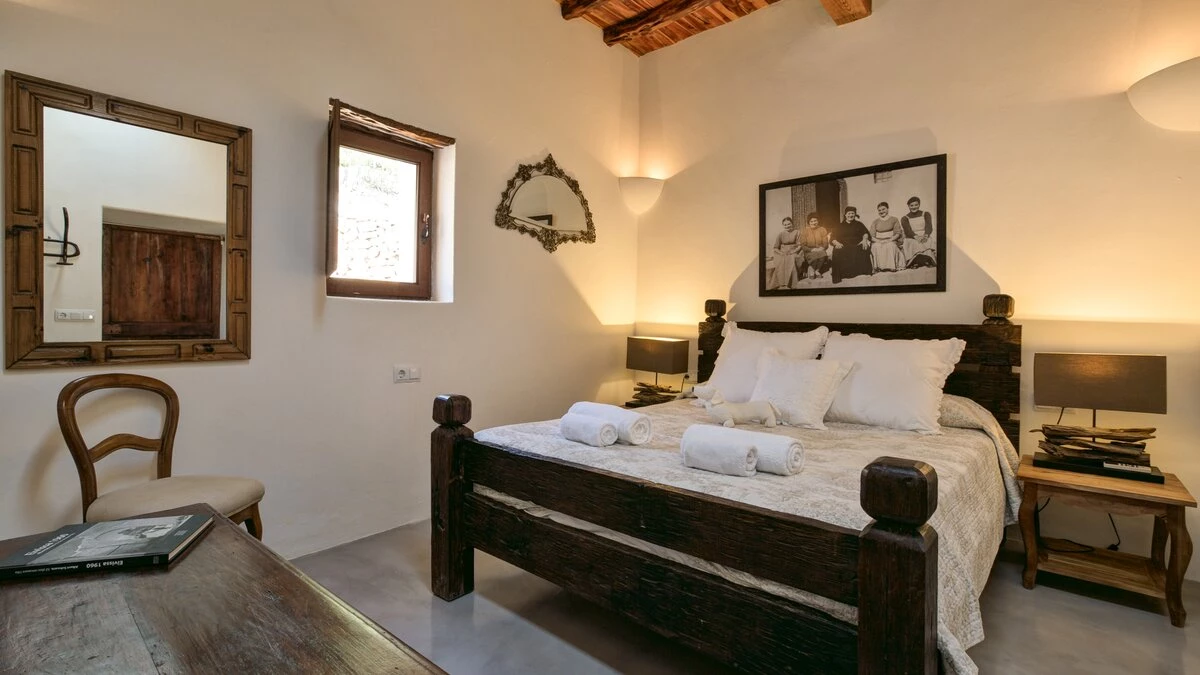 Affording you total privacy and maximum comfort, this large estate is the perfect choice for a large group. There's an outdoor infinity pool that looks over great views of the farmland, and four outdoor seating spots (including two scenic dining areas). Inside the villa, the two separate living rooms are great for a cosy villa night in - while both have plenty of character, one is set in the property's original grain mill. Throughout the farmhouse are six double bedrooms, four of which include the luxury of a private en suite. Choose the 'tower master suite' for better views and an outdoor terrace, or head to 'the studio' for a private living area and terrace. If you're looking to explore more of the island, San Antonio is just 2km away while Ibiza town is an 18.3km drive from the villa. For beaches, you're less than 3km away from the pretty white sands of S'Arenal.