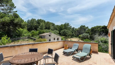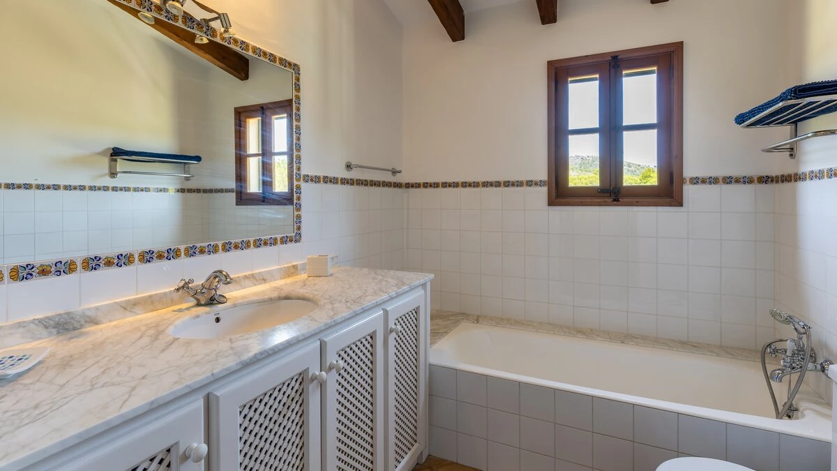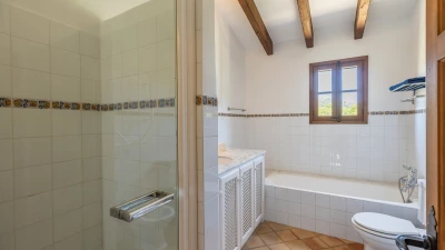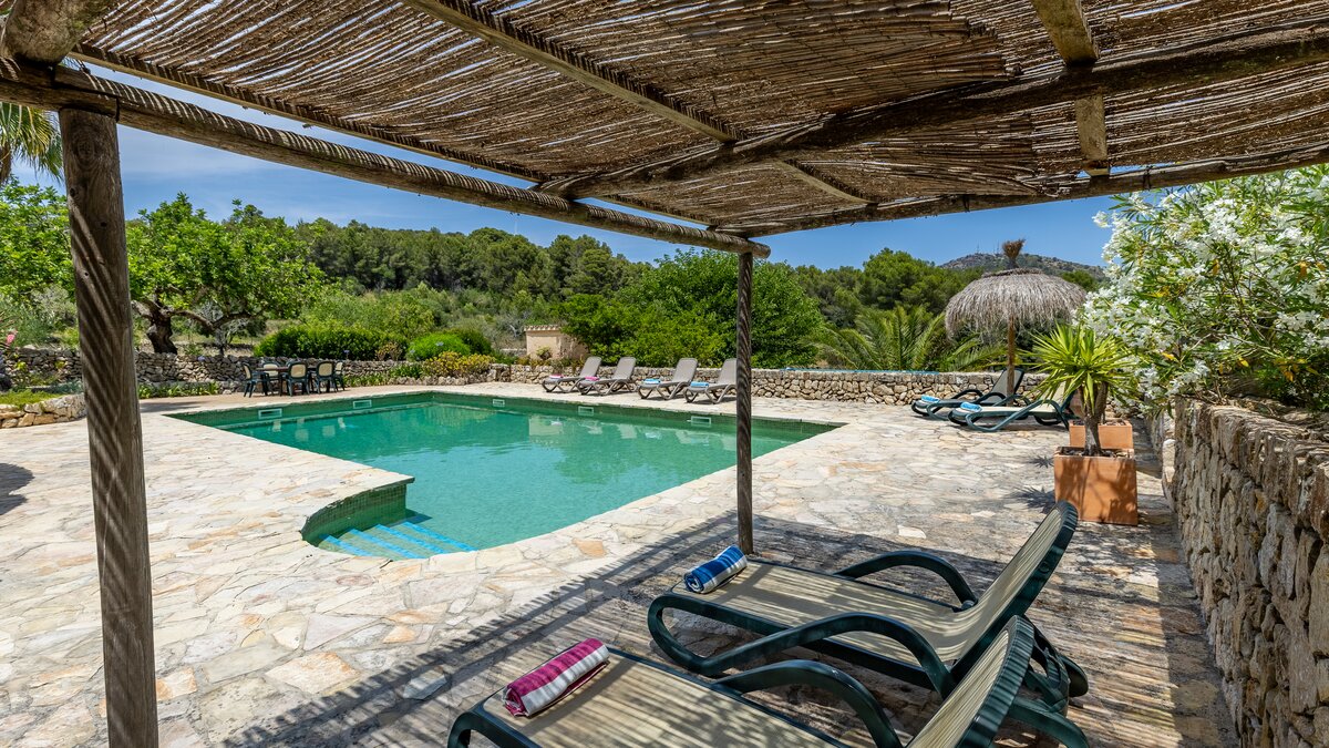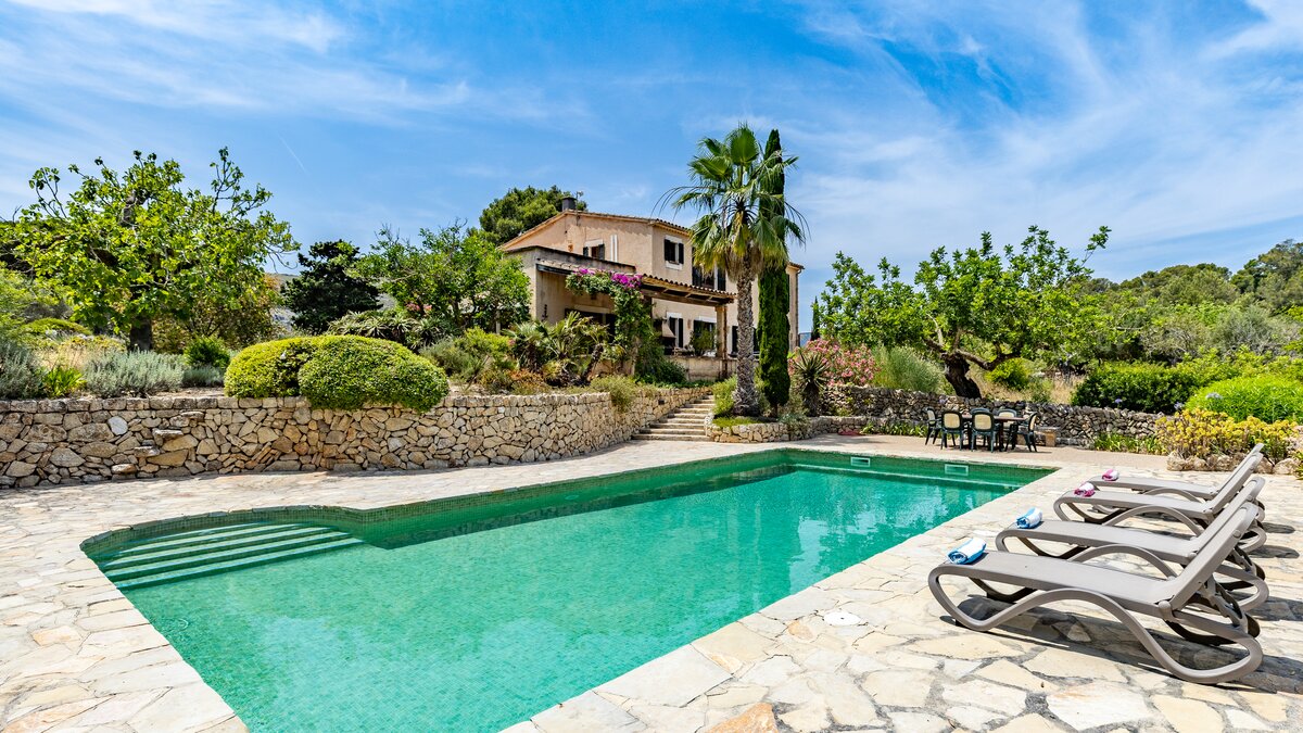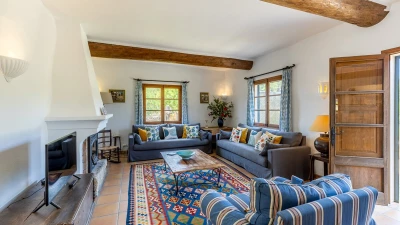 Upstairs, the four bedrooms are furnished in very attractive country style with use of distinctive local Mallorquin fabrics. Cleverly landscaped gardens, ablaze with summer colour, add to the sense of rural relaxation here, and cook service could make a more tangible contribution to leisurely days. To up the tempo, Alcudia is just 5km from the villa, with a popular beach, shops, restaurants and a Roman Theatre. The charming town of Pollensa with ample choice of restaurants and good shopping is within 8km, and the 18 hole Golf Alcanada course is one of several good golf courses nearby.