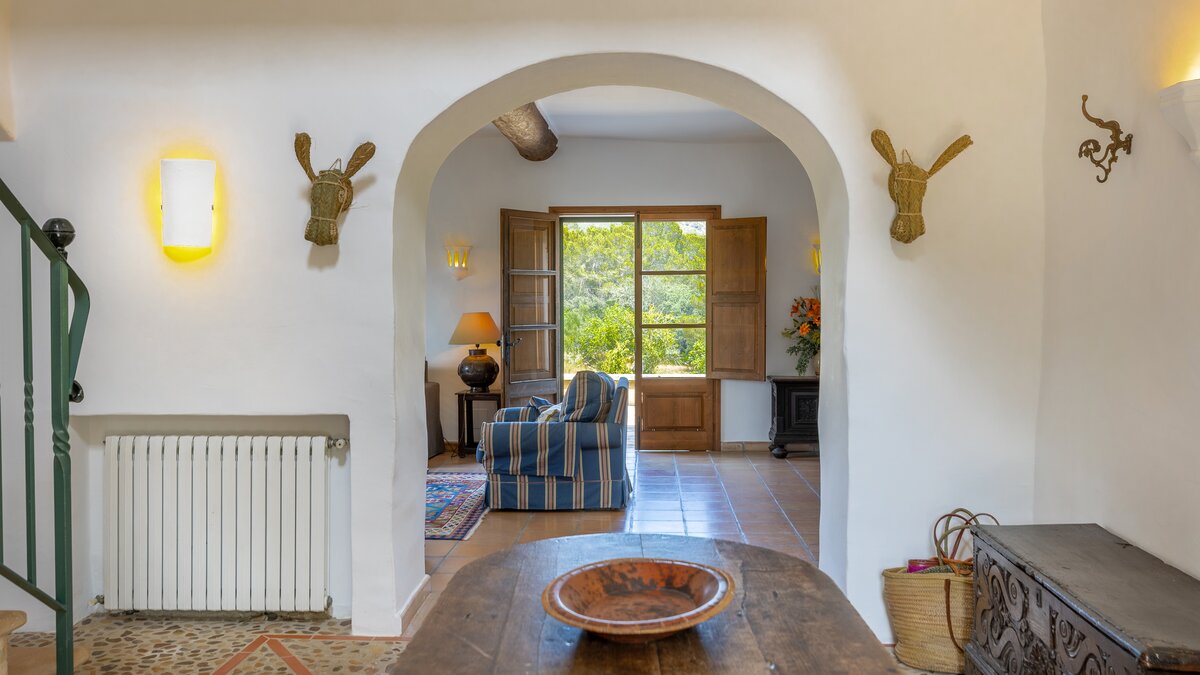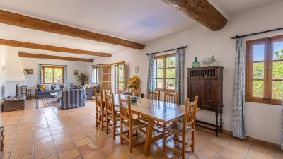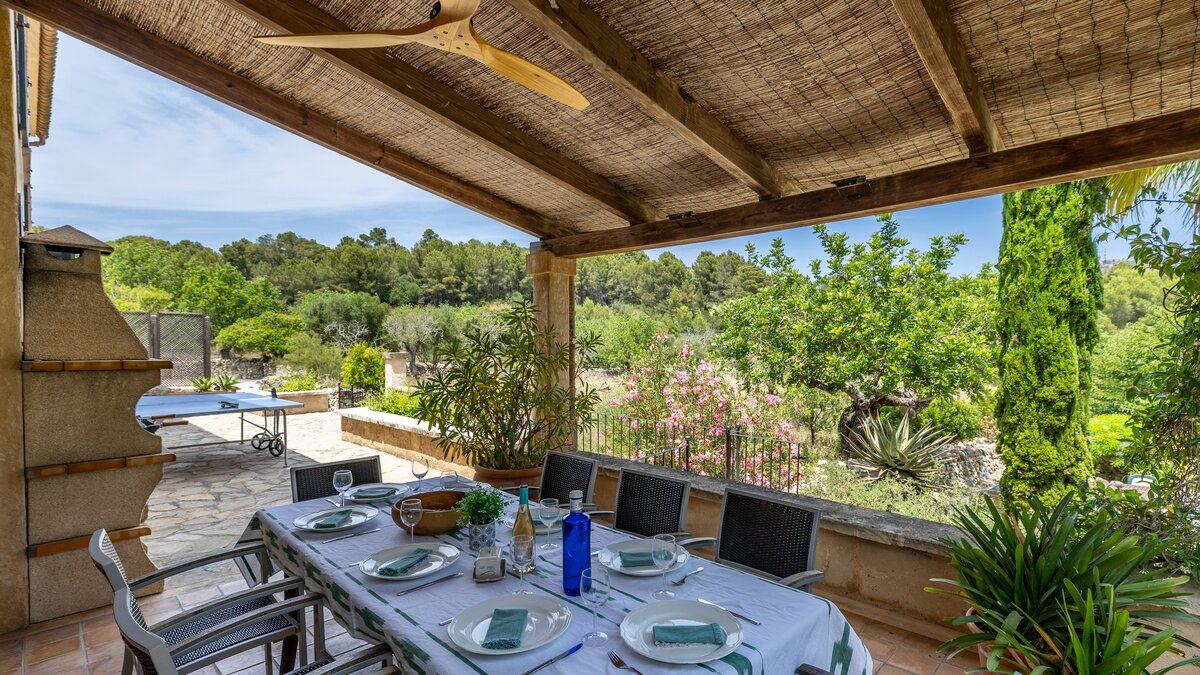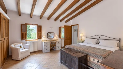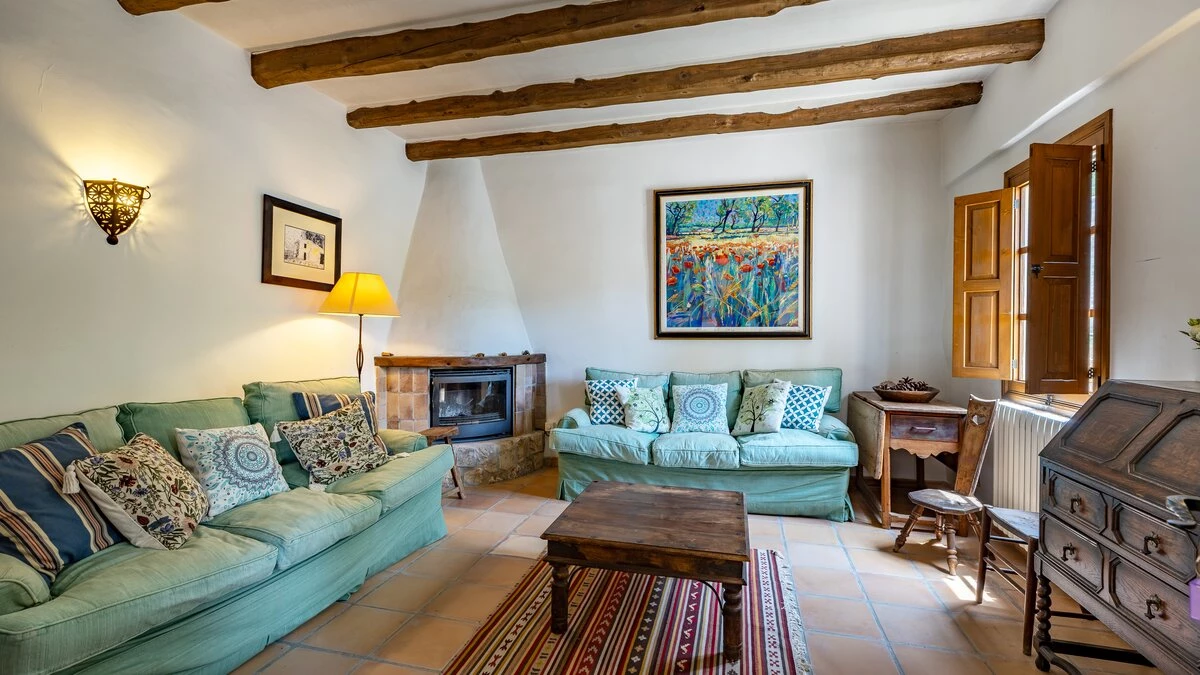 Nestled in the hills behind the bays of Alcudia and Pollensa, with tranquil views to the Tramuntana Mountains, Ca'n Isabella is a lovingly restored Mallorcan finca set on a small private estate of some 20 acres, where spacious and uncluttered rooms are furnished in comfortable country style. A large living/dining room, with lots of windows and a log burning stove, the heart of the house, is complemented by a study/snug which can also serve as a play room, and opening out to a shaded dining veranda and soft seating area which overlook the gardens and have wonderful views down the valley. Steps lead down from here to a large twelve metre swimming pool, gated within surrounding low stone walls, and with a furnished pergola on the paved poolside terrace. Perhaps enjoy a quick work out in the sun courtesy of the newly appointed fitness equipment which includes hand weights, kettle bells and yoga mats, ideal for keeping fit on holiday.