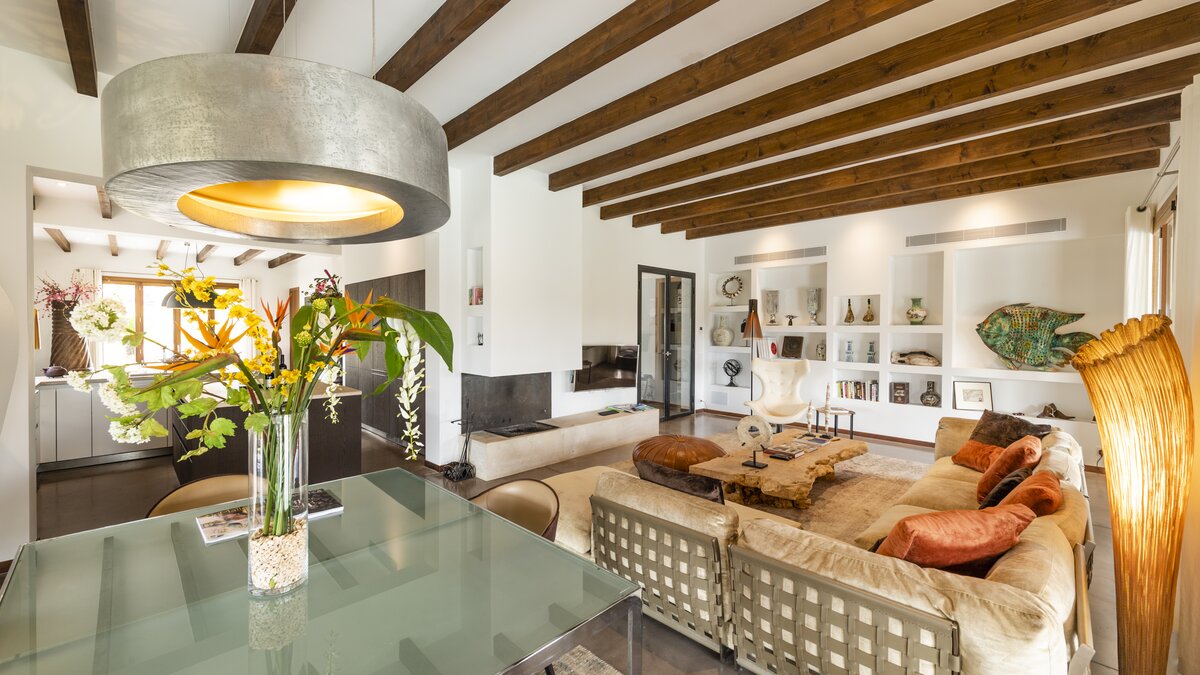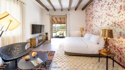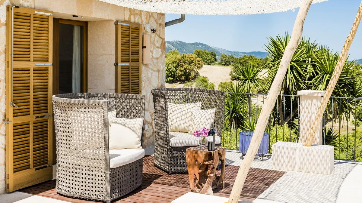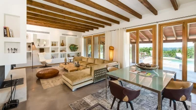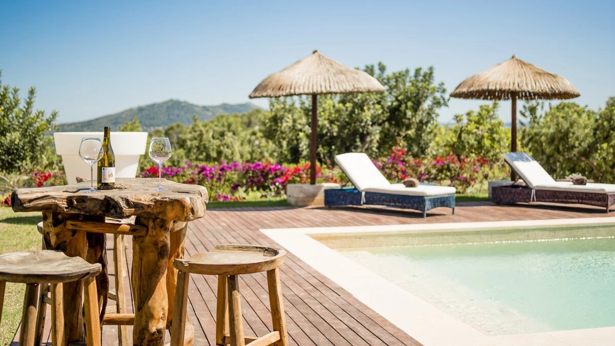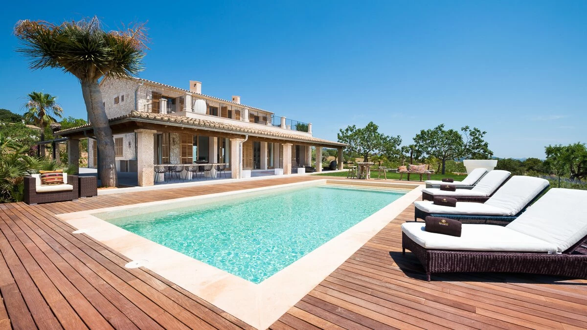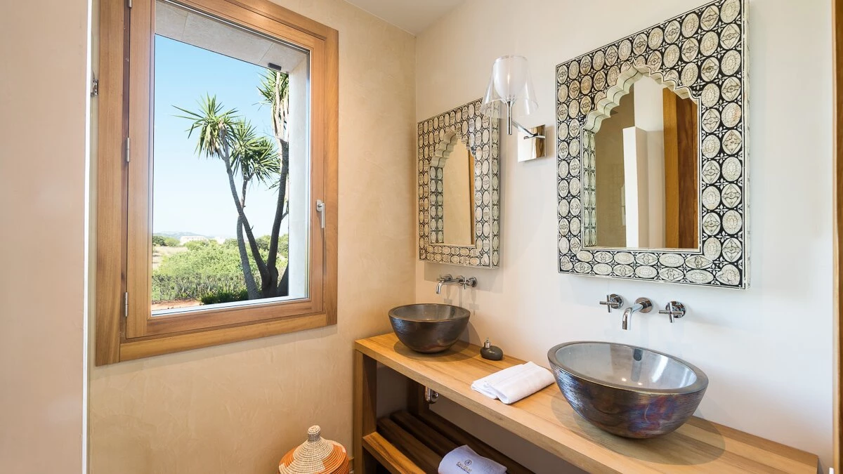 Located in the heart of Mallorca, between the picturesque towns of Selva and Moscari, Ca’n Llorenc is one of two private villas set in 20 hectares of Mediterranean gardens, and offers sweeping views of Alcudia Bay and the Tramuntana Mountains. The villa is decorated with a mix of unique hand-picked items, works of art from around the world, and top of the range mod-cons. The ground floor has a billiard table area opening onto the living room, and there is also a table tennis table as well as a shared tennis court, making this property ideal for families. There are five en suite twin bedrooms, one on the ground floor, and one at each corner of the upper level. The ground floor bedroom leads out to the pool area and gardens. The kitchen/dining area is fully equipped with a Bulthaup kitchen and leads out onto a covered terrace perfect for al fresco dining. On the upper level, as well as the four bedrooms, there is an open living area leading onto a terrace with spectacular views. The villa is in easy reach of the island’s many attractions, including beaches, walking trails and cycling routes.