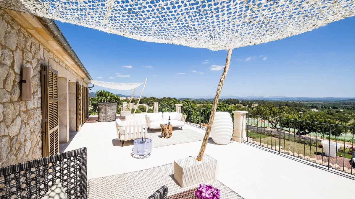 With stunning sea views from the house and spacious terraces, this is a stylish luxury villa in Mall... -