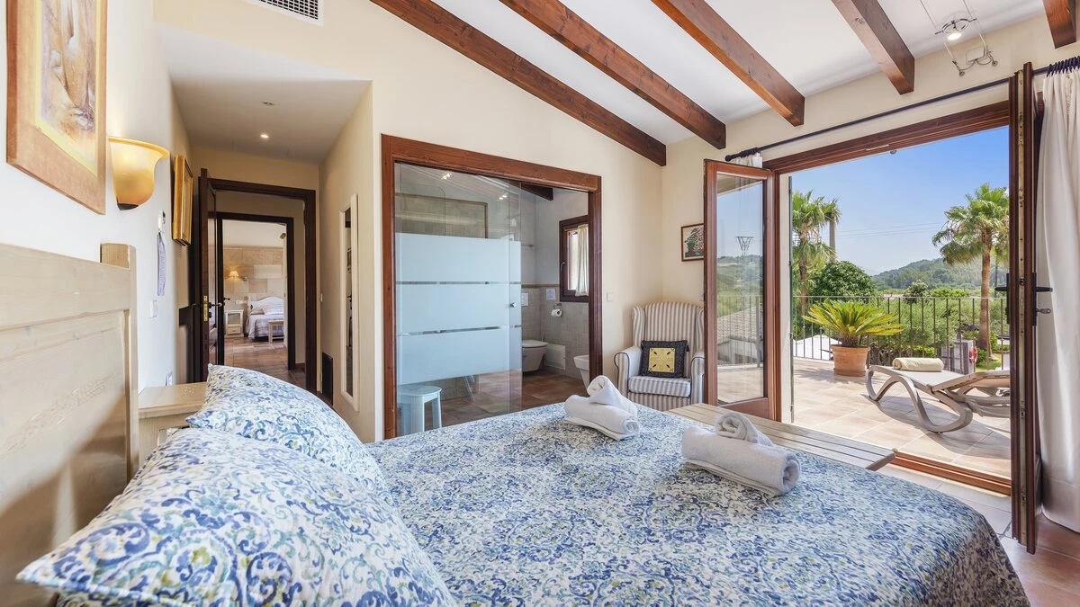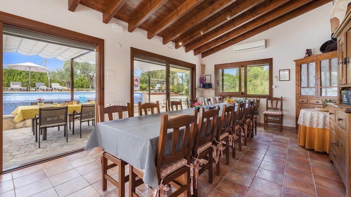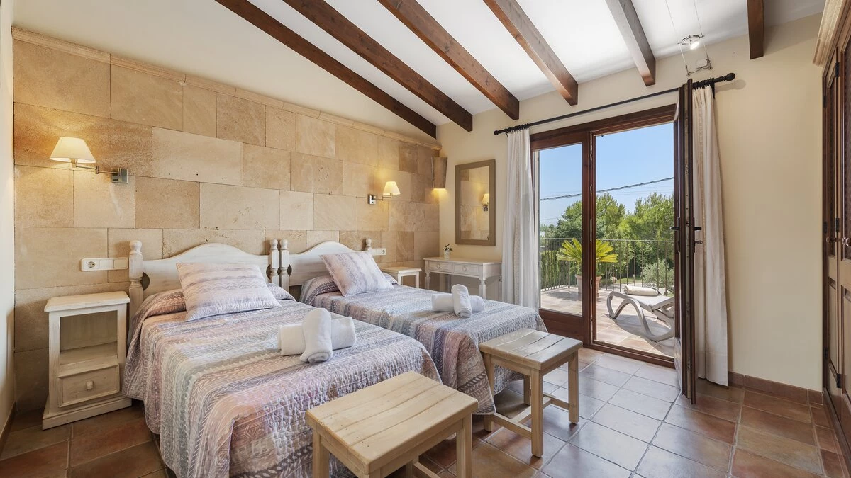 Ca'n Molina is a spacious and welcoming villa in Mallorca, specially designed for families seeking relaxation and recreation. Inside, the villa is furnished in a cheerful and rustic Mallorcan style, enhanced by exposed wood beams and warm tones. The villa includes five spacious bedrooms, several of which include an en suite and access to the terrace. The bedrooms contain a mix of double and twin beds, perfect for multi-generational escapes.