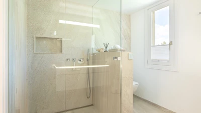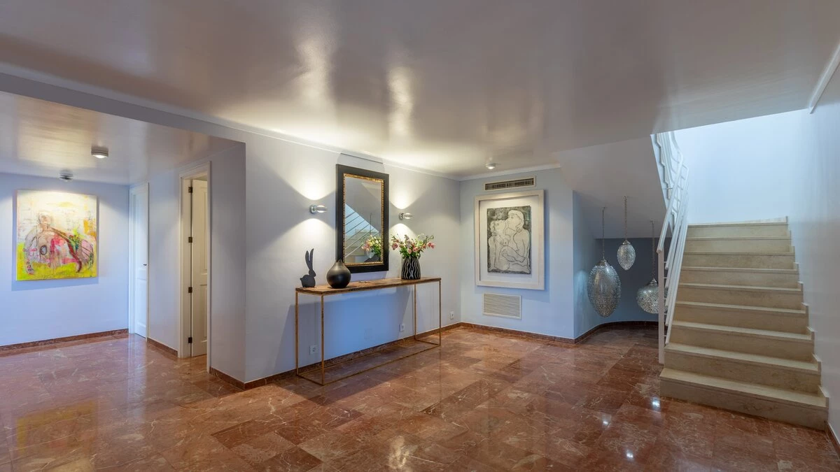With stunning sea views from the house and spacious terraces, this is a stylish luxury villa in Mall... -