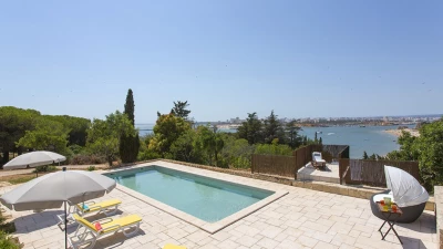 This pretty pink villa commands lovely views of the sea as well as the nearby coastal town of Sagres... -