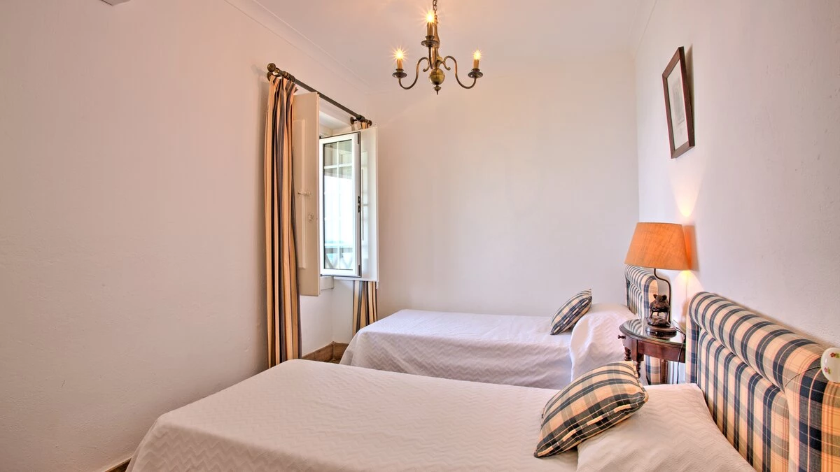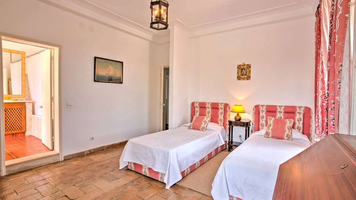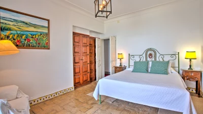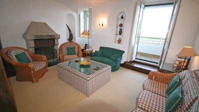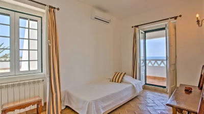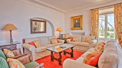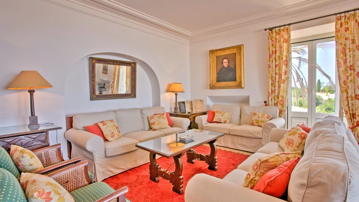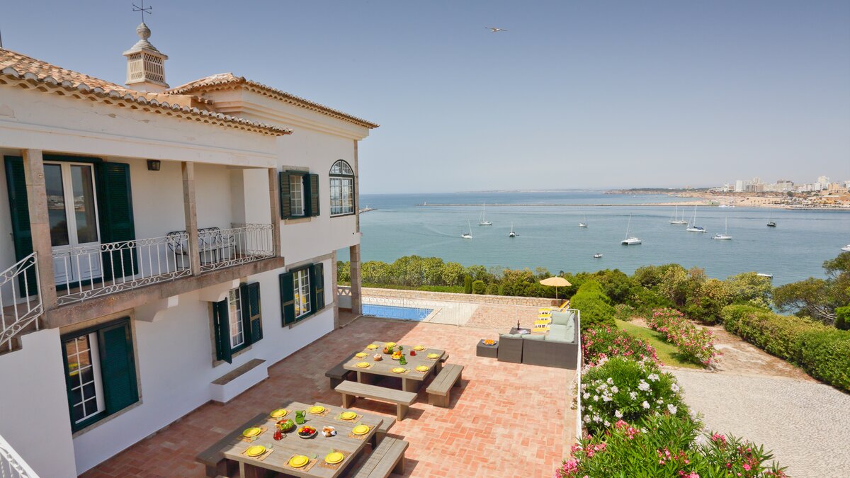 A royal property in a regal setting, this huge villa is perched in splendid seclusion in extensive grounds on a cliff-top overlooking the sea facing west towards Sagres and the setting sun with terraces at all levels for eating indoors or just chilling, enjoying the magnificent views and a swimming pool overlooking the sea. Immaculately kept, it retains its informal atmosphere and personal touches. Facilities include table tennis in the games room, a grand piano in a sitting room, a bar at pool terrace level, a large TV room and a private chapel. The style of this unique house is one of past grandeur, beamed ceilings, antique tiles and traditional furnishings adding character to comfort.Recent additions include additional soft seating and built-in seating on the main terrace in addition to the existing tables and chairs. The beach with a selection of simple beach restaurants in season, is accessed by steps directly below the property or via a more gentle pathway through the gardens and a gate. Although the property feels very separate and private, it is actually just 1km from the quiet charming fishing village of Ferragudo and 6km from busy Portimao with good shopping and all facilities. We strongly recommend a walk along the beach to the small restaurants quayside where you can get delicious grilled fresh fish. Golf, tennis and water sports and horse riding are all a very short drive away. There are further renowned restaurants within a short drive. A superb choice for an informal family holiday or special celebration.