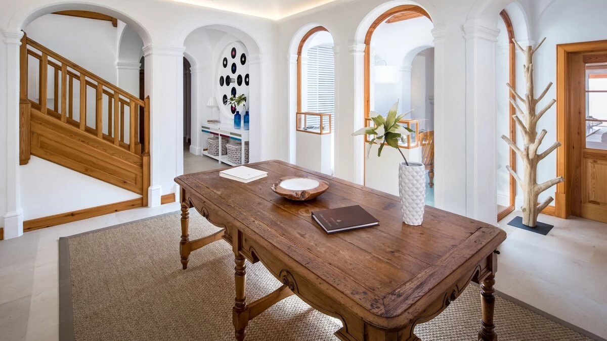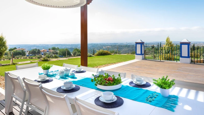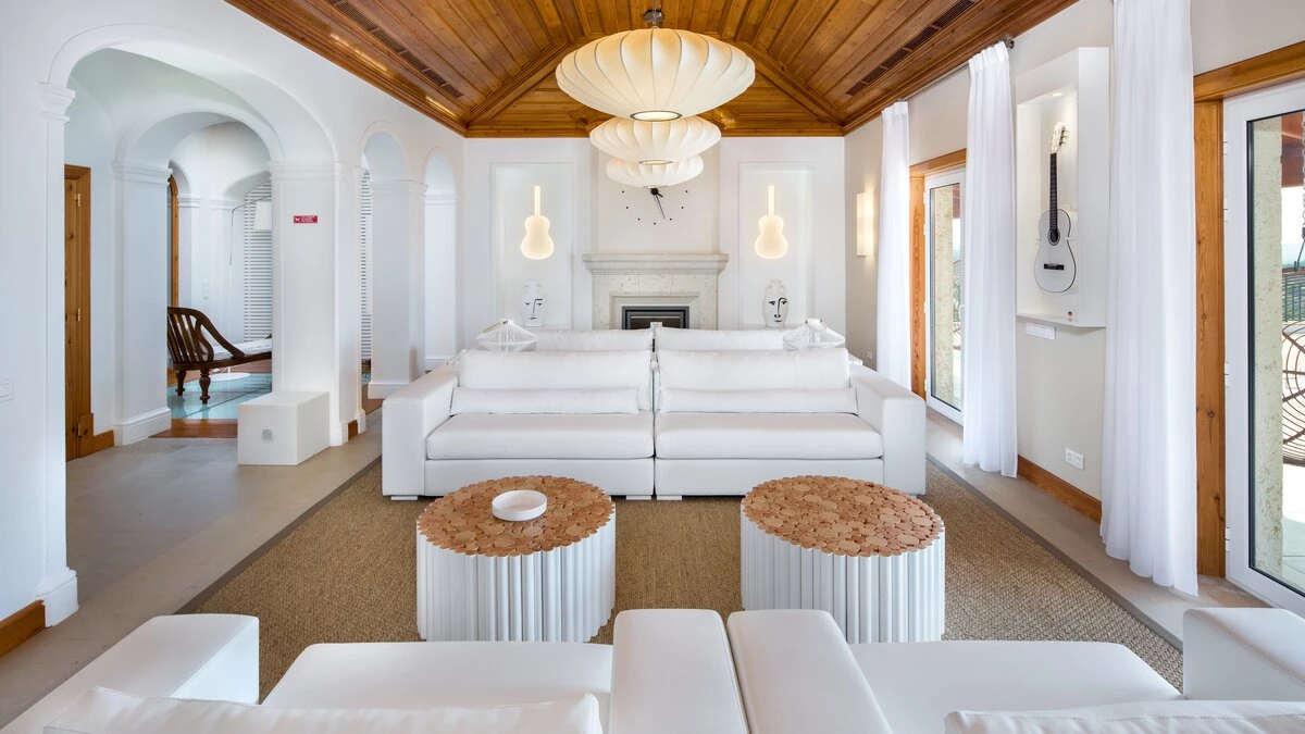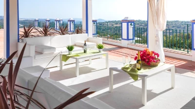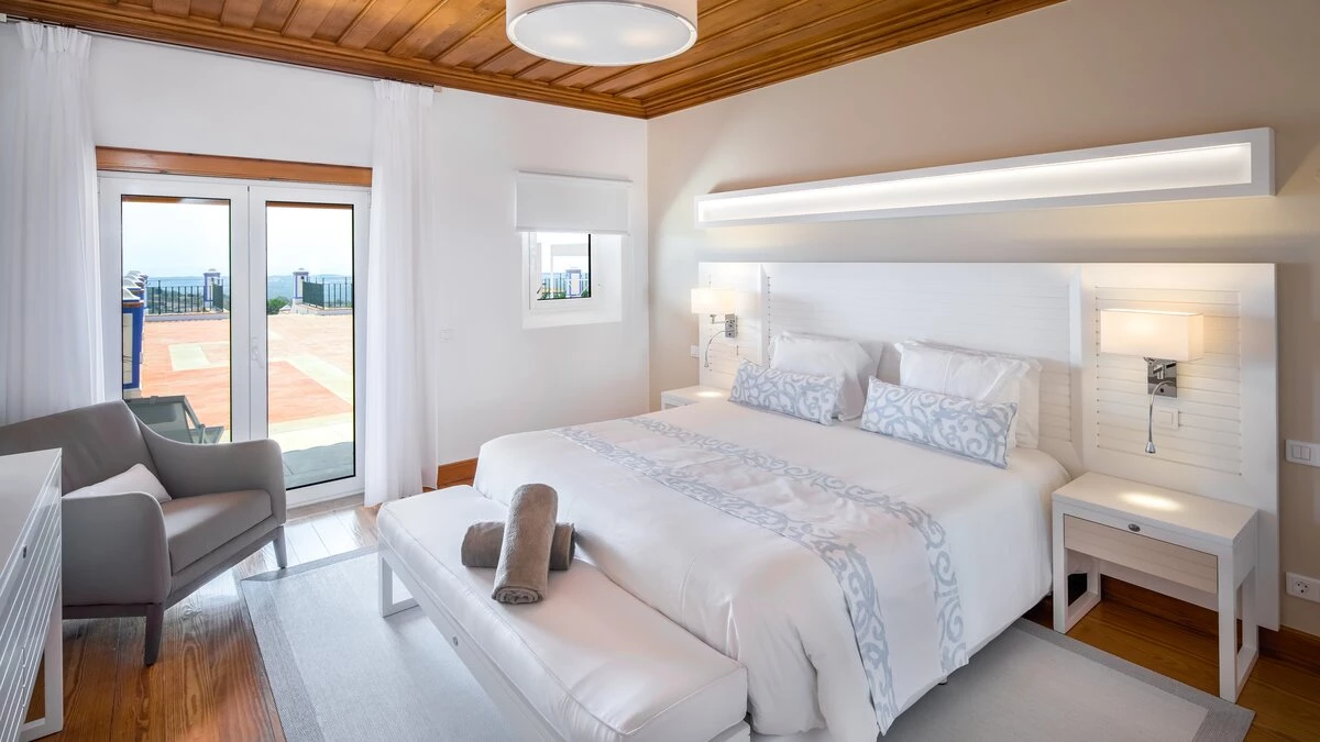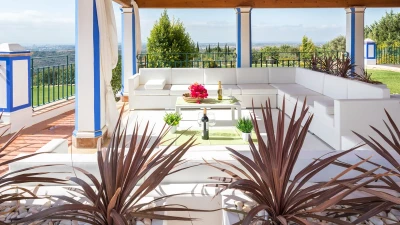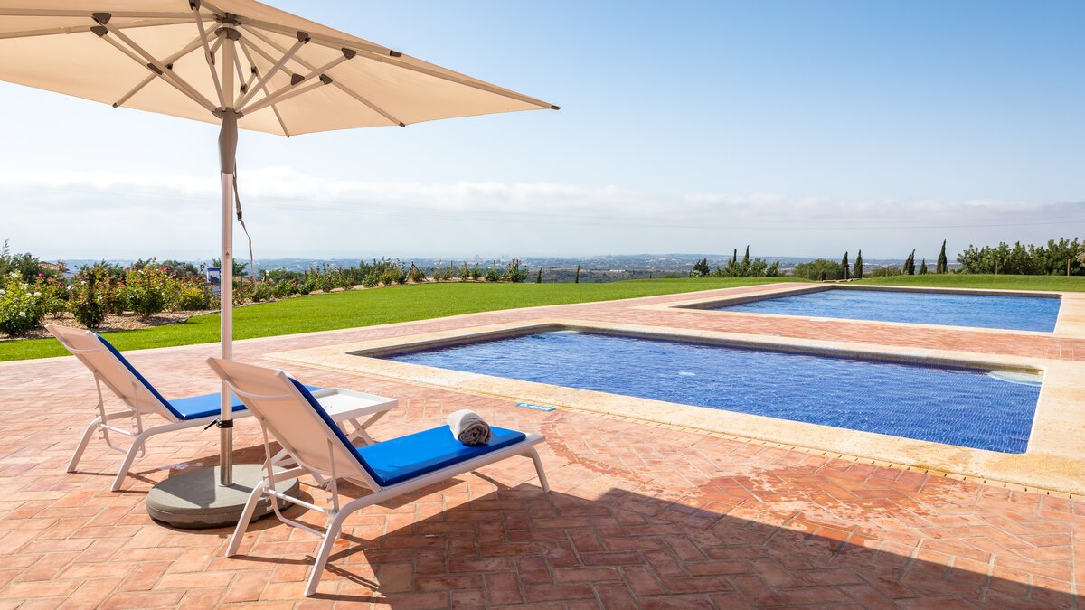 Traditional on the outside and contemporary on the inside, this spacious villa in the Algarve is the perfect destination for a relaxing retreat with family or friends, close to all amenities in Boliqueime and just 13km away from Falesia beach.Enclosed by extensive lawned gardens, this attractive two storey property has a private heatable pool as well as a children's heated pool. With generous indoor and outdoor areas, Casa da Viola opens up to an airy terrace, numerous covered lounge areas, a dining table for al fresco meals and a staircase leading down to the pool area and well-tended gardens. Inside, the property is decorated in a soothing colour palette of whites and neutrals, with marble floors and wooden furnishings throughout.
