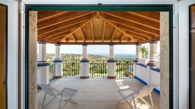 The well-equipped kitchen with breakfast table leads through to an open-plan living and dining room with direct access to the spacious terrace. All bedrooms in Casa da Viola have bathrooms or shower rooms en suite. Four double bedrooms and a twin bedroom are found on the ground floor, while the upper level houses a twin bedroom and the lovely master suite opening to a private covered terrace. This villa is just a short drive from all amenities in Boliqueime, while Falesia beach is only 13km away.