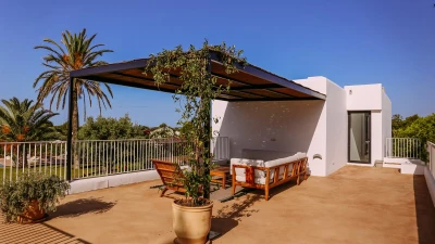 With stunning sea views from the house and spacious terraces, this is a stylish luxury villa in Mall... -