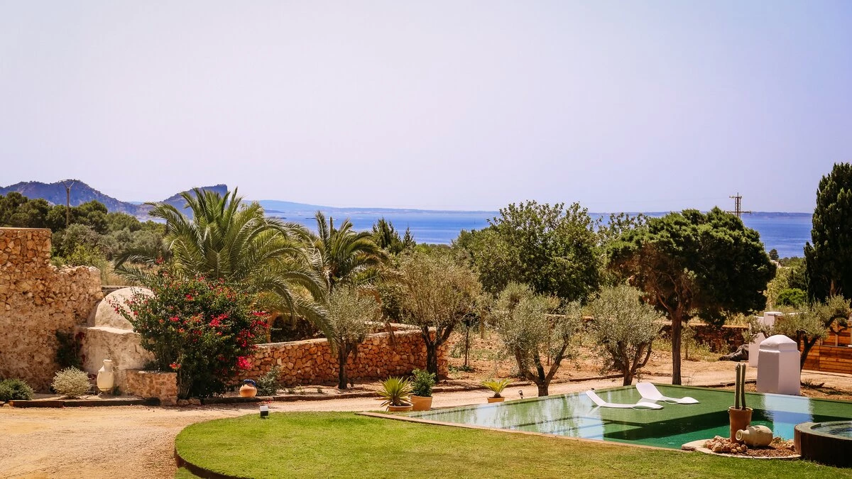 Poised magnificently among expansive gardens, close to Blue Marlin, Casa Mare is a stylish and spacious villa in Ibiza. The villa boasts far-stretching views from its enviable location, which can be best enjoyed from the tranquil private pool beneath swaying palms. Inside, furnishings are modern and boutique style, including a living room, well-equipped kitchen and dining space. Accommodation is spread across five spacious and modern bedrooms. The additional annex is perfect for guests who wish to combine privacy and proximity, offering independent access to a kitchen, living and dining area, two en suite bedrooms and a small patio area.