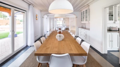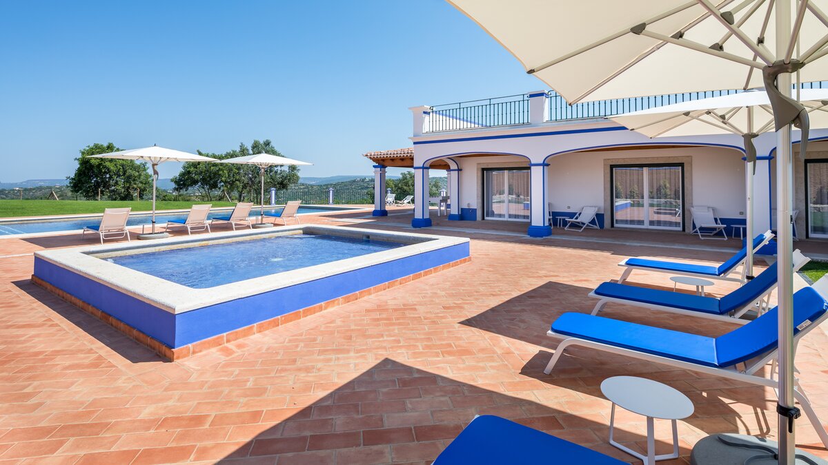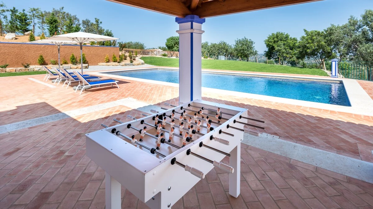 Beautifully decorated, with interiors in a stylish and calming colour palette of whites and neutrals, Casa Ruina is perfect for a relaxing retreat. A spacious, well-equipped kitchen with breakfast bar leads through to a light and airy living/dining room and adjoining games room with pool table. The bright, comfortable bedrooms, a twin and two doubles, all with en suite shower rooms and French doors flooding the rooms with light, complete the layout.From the living space, glass doors open onto a shaded veranda furnished for al fresco lounging and dining, and on to the pool terrace with impressive 15 metre pool and separate kids’ pool. With ample sunloungers, this is the ideal sunny spot to take in the sweeping views out over the countryside. Casa Ruina is just a short drive from the beaches, shops, restaurants and nightlife of Vilamoura and Albufeira, while Boliqueime is only 4km away.