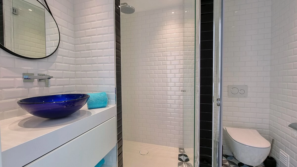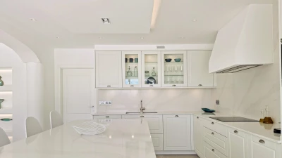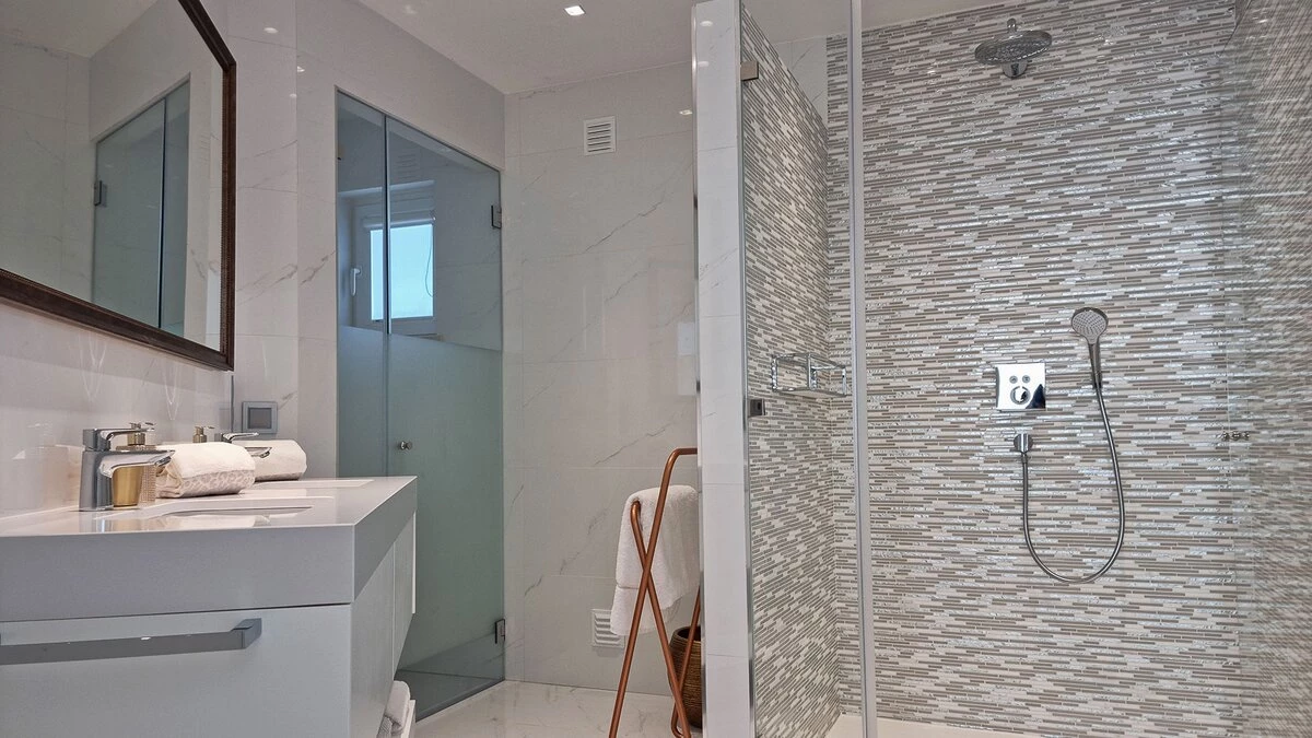 Upstairs, the villa features three exquisitely designed bedrooms, each offering an ambiance of tranquillity and elegance for a truly restful stay. Every bedroom is furnished with a luxurious king size bed and complemented by a private en suite shower room, creating a serene and secluded retreat tailored for each guest's comfort.