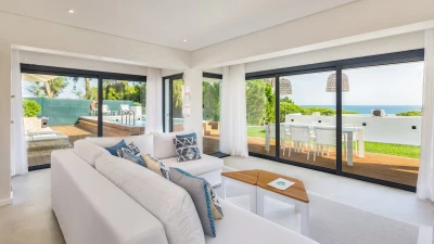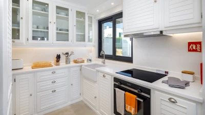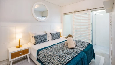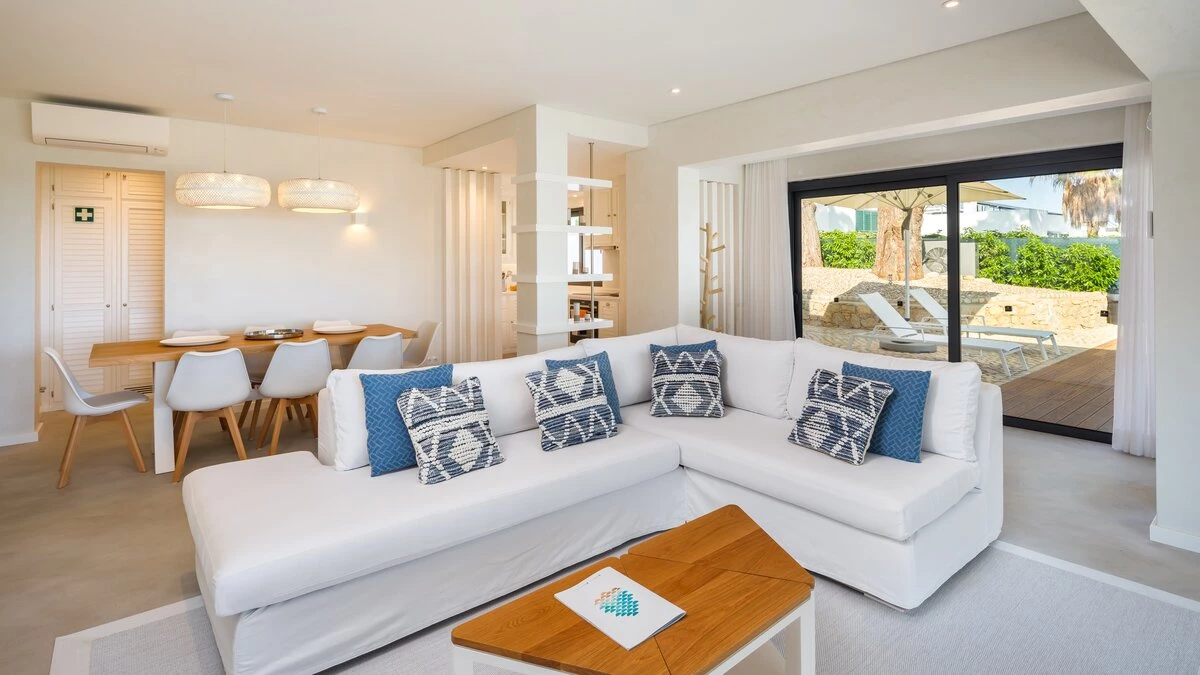 With breathtaking sea views in tranquil blue hues, Casa Vista is an oasis of calm perfect for a small family or a couple. Conveniently located close to the coast and just 300m from shops, bars and restaurants in Olhos d’agua, everything you need is just a short walk away. Accommodation is all on one level and decorated all in white with shades of sea blue in the soft furnishings. An open-plan living area features a large corner sofa with floor to ceiling windows looking out to the terrace and an indoor dining area served by a charming compact kitchen. Two lovely en suite bedrooms complete the property.