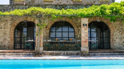 La Fonte is a newly refurbished, stylish five bedroom villa at Borgo Pignano, perched beautifully am... -