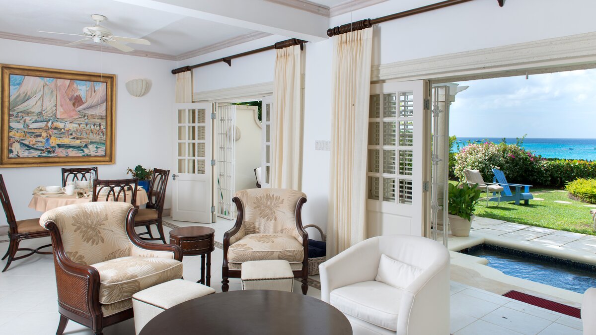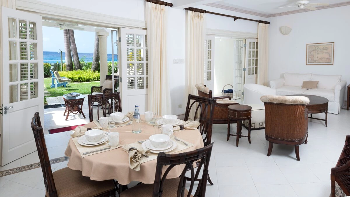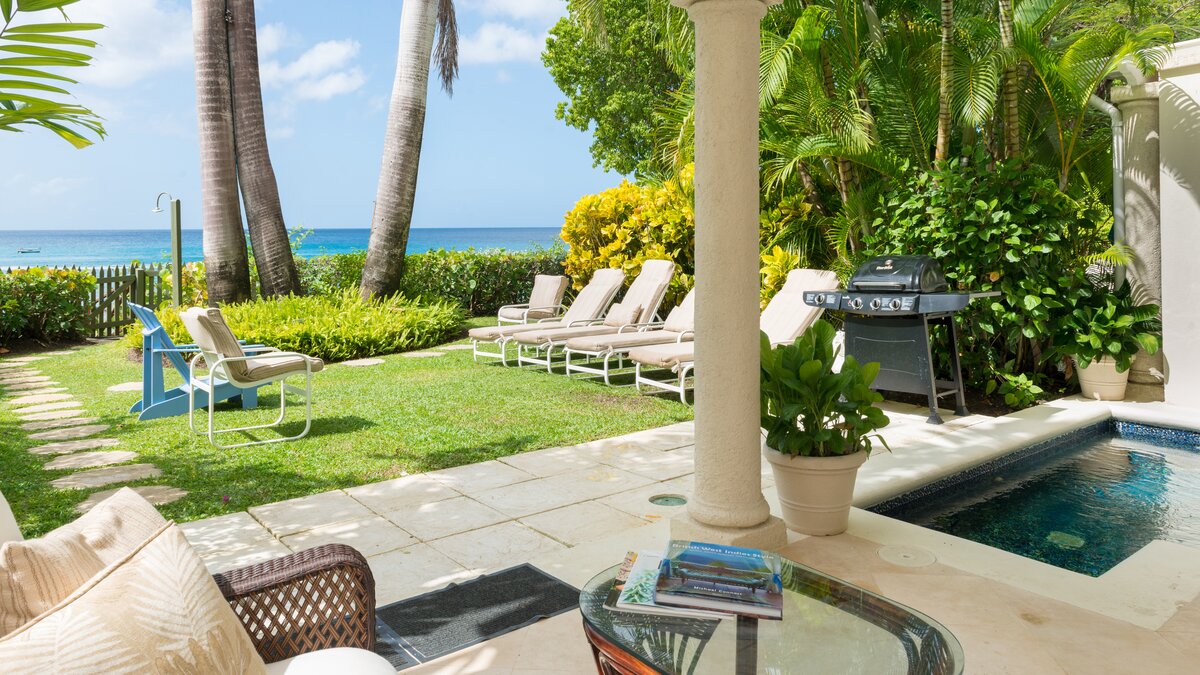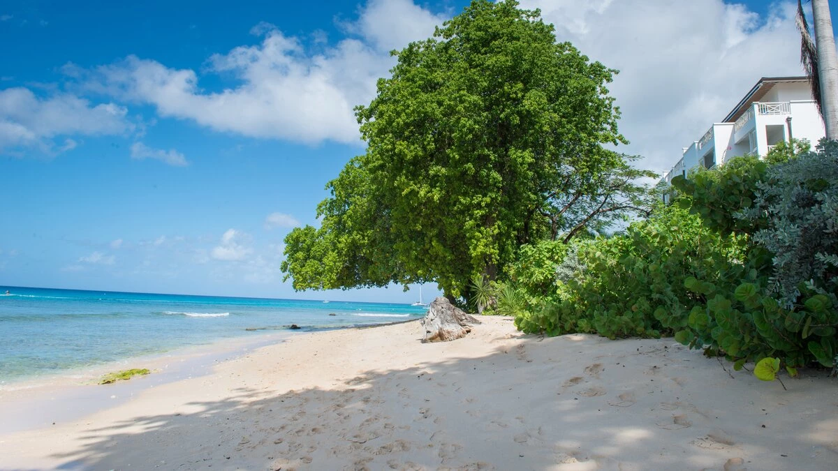 Perched along the sunny Paynes Bay Beach in St. James, Barbados, Mahogany Bay - Chanel No.5 offers a sophisticated blend of comfort and Caribbean charm. This three-bedroom townhouse is ideal for families or small groups of friends seeking a tranquil yet vibrant holiday experience. With its beachfront location, and cook service included, the villa provides the perfect setting for an unforgettable stay. The property seamlessly merges indoor luxury with outdoor beauty, creating a haven against the backdrop of turquoise waters and golden sands.