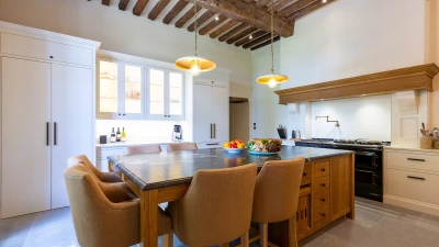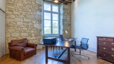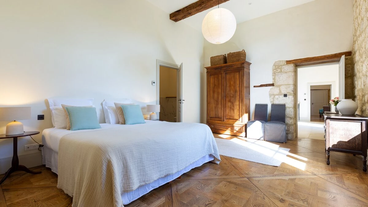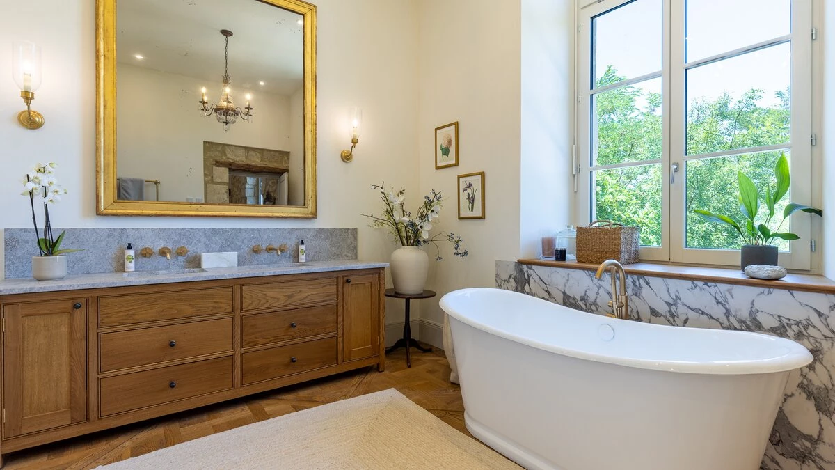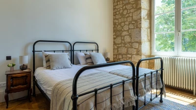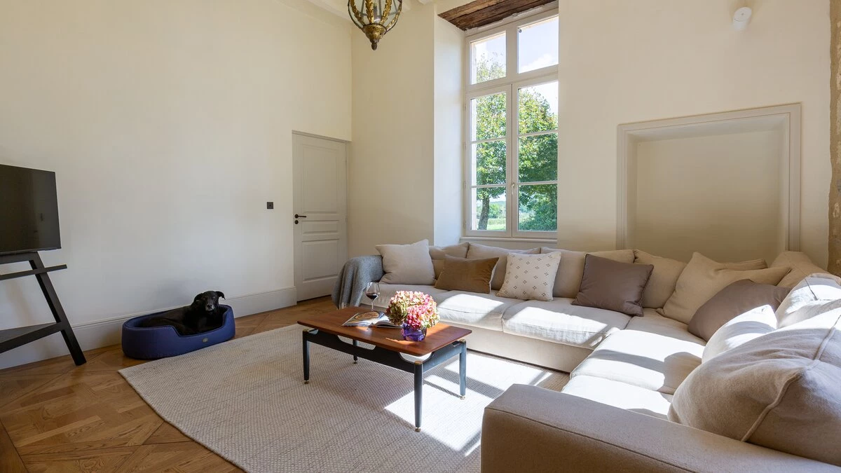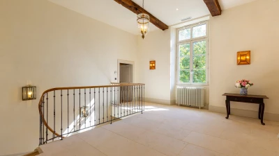 Ascending the grand staircase, guests will find six beautifully appointed bedrooms on the first floor of the main chateau. Each bedroom is generously sized, with soaring 3.5 metre high ceilings and its own luxurious bathroom, ensuring comfort and privacy for up to fourteen guests. The thoughtful restoration preserves the chateau’s historic charm while providing all the modern comforts.
