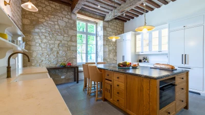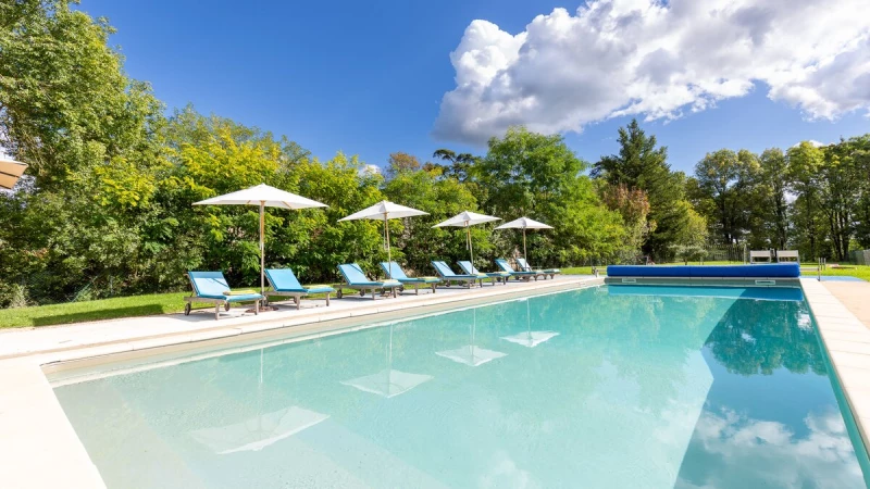 Surrounded by a tranquil moat and set within 10 hectares of private gardens, meadows, and woods, this honey coloured, stone estate offers an idyllic escape for families and friends. Lovingly restored to the highest standards, this chateau welcomes guests with timeless elegance, complete privacy, and a sense of peace, all just minutes from the charming village of Villeréal; one of France’s most beautiful villages.