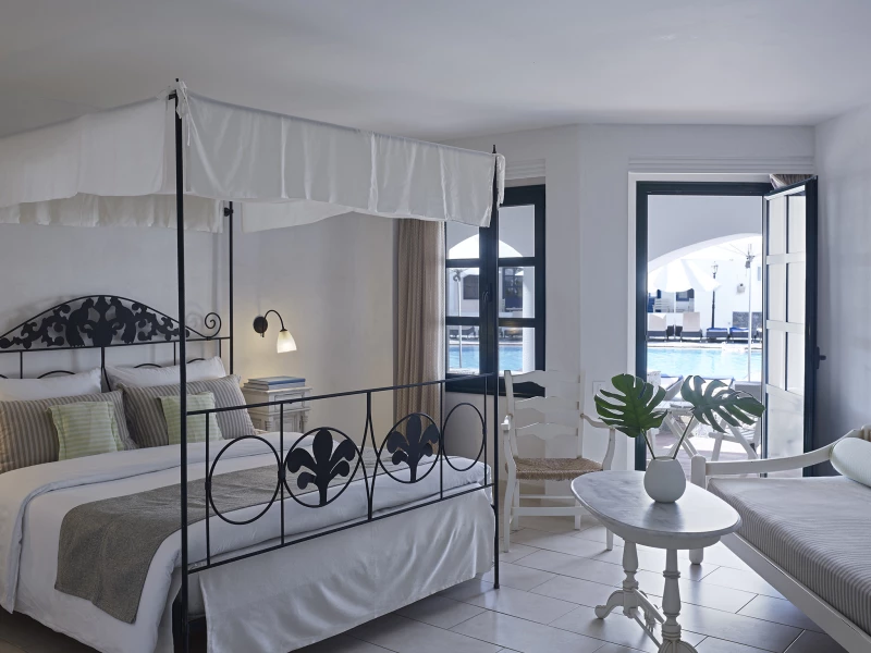 Unwind in style in our Deluxe Rooms, where modern amenities meet timeless charm. Choose your view—the shimmering Cretan Sea, tranquil gardens and mountains, or inviting poolside serenity—and let the atmosphere set the tone for your perfect escape.