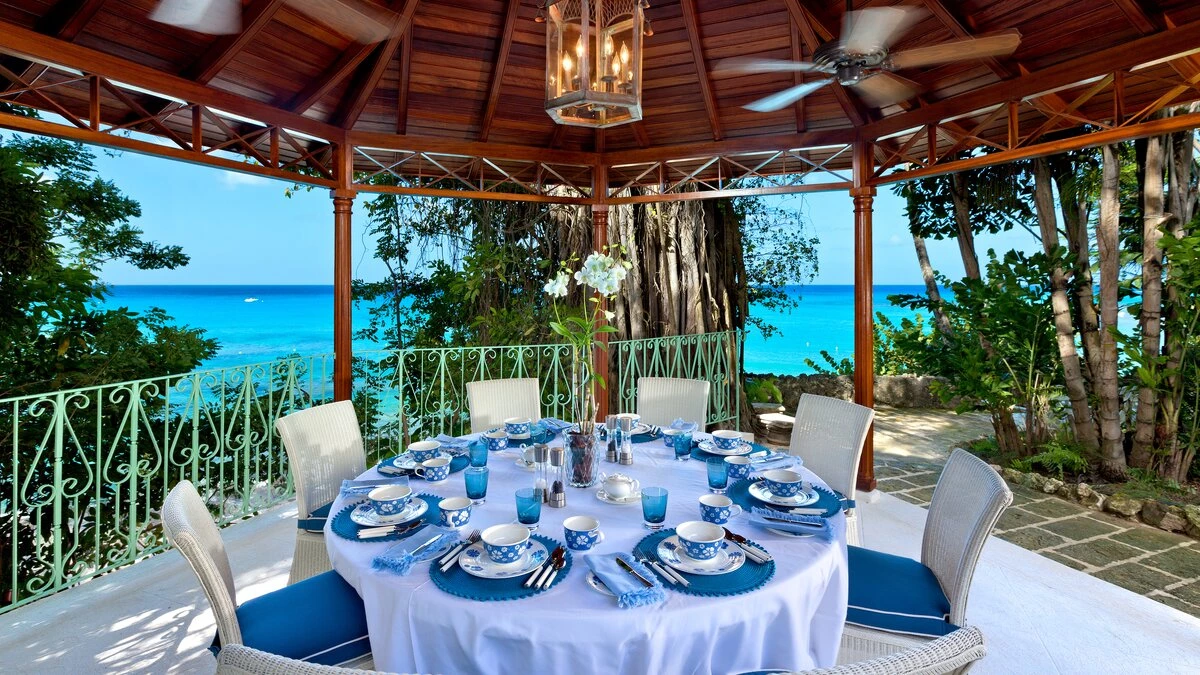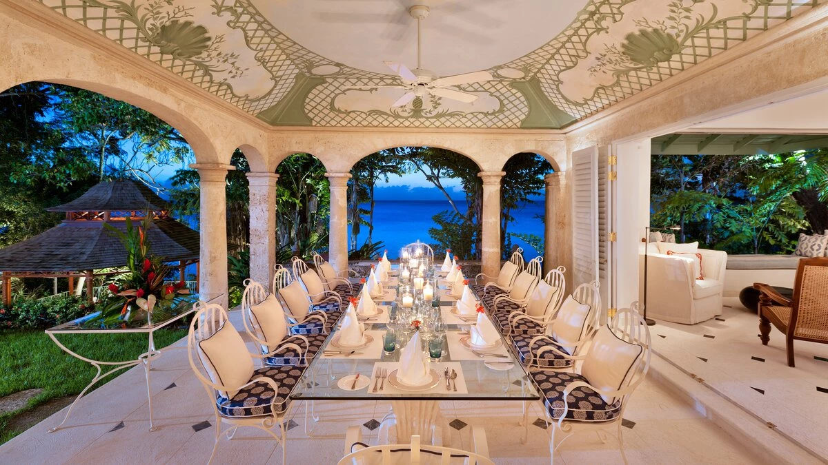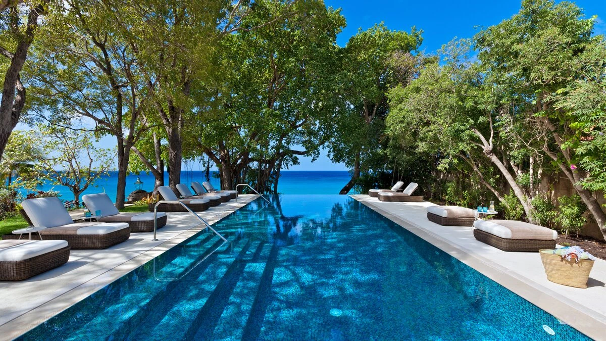 Only an exclusive few are privileged to experience the pleasure afforded by a stay at Crystal Springs, one of Barbados' most spectacular beachfront villas. Located on 1.7 acres on the West Coast, Crystal Springs was built in the 1940s and redesigned by Oliver Messel in the 1960s, and the characteristically theatrical ambiance has been faithfully maintained.In the Main House, guests can relax in the living room and enjoy the view, or dine on the terrace which features a frescoed ceiling as well as great ocean views. The master bedroom and 2 other bedroom suites are also located in the Main House. A short walk over the bridge that spans the natural watercourse running through the property will bring you to the Annexe with bar, sitting area and 2 one bedroom suites, and then on to the ocean front, cliff-top dining patio - one of the three great areas for alfresco dining, sipping a rum punch at sundown or simply star gazing at night with candles. From this patio, it's just a few steps up to the pool area, or down the cliff steps to the secluded beach cove. Across the gardens from the Main House, is the Tea House, where the 6th bedroom suite is located. There is also an air-conditioned home theatre, a pool house with 2 bedrooms en suite and the Pavilion, with 2 further bedroom suites and a small gym.Crystal Springs is an excellent choice for multi-generational families or groups of friends looking for a highly luxurious, exceptionally well maintained and spacious holiday home, with a high level of personal service. Recently renovated it provides in true Messel style, plenty of outdoor living space, which opens out from the various living and sleeping areas. Guests are well looked after by a full team of no less than 14 dedicated staff, allowing you to enjoy gourmet dining, five star concierge service and personalised yet unobtrusive pampering. Dining is a particular highlight at Crystal Springs with menus prepared to guests' specifications, stocked butler's pantry, homemade treats and sweets, freshly baked breads and pastries, fresh-squeezed tropical juices, seaside barbecues in the cove, picnic baskets for beach days and boat trips. Special snacks and guest favourites are prepared on request.