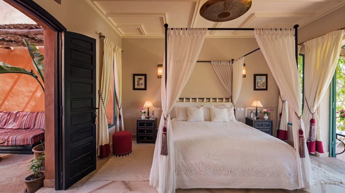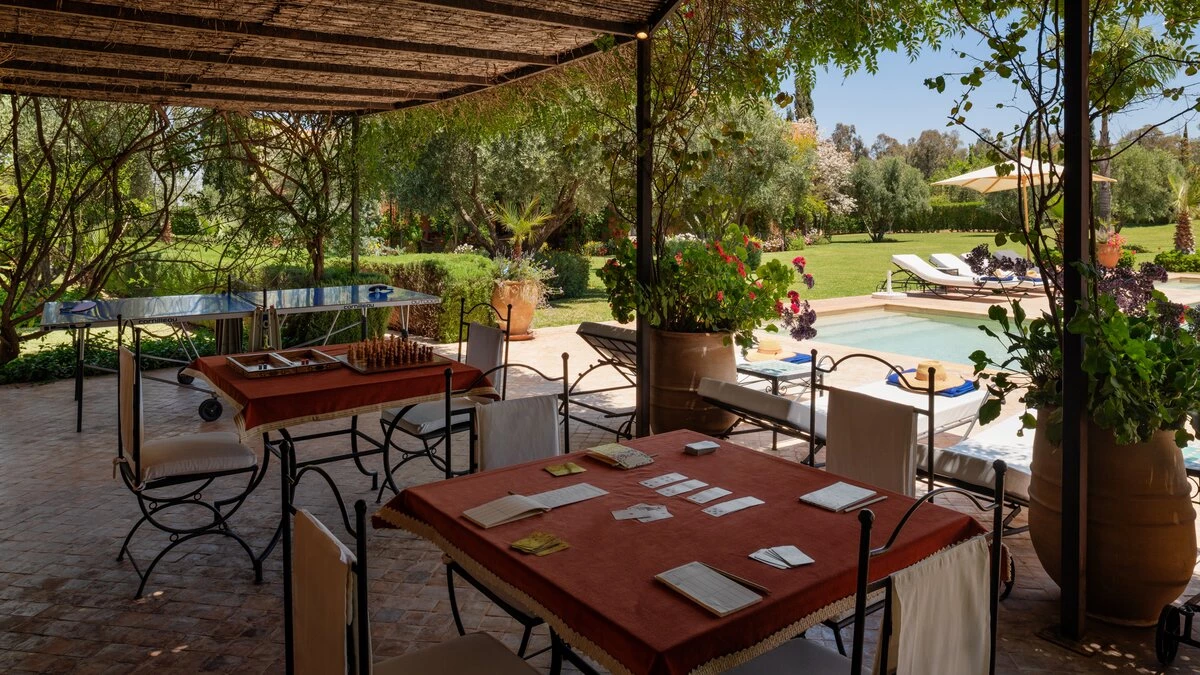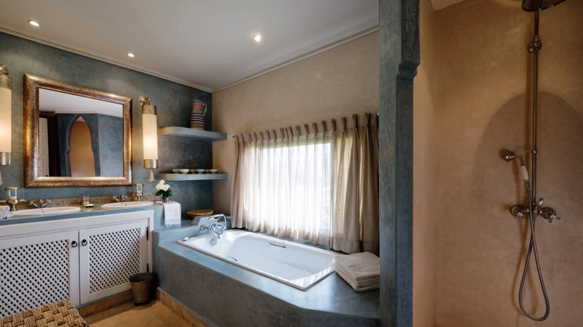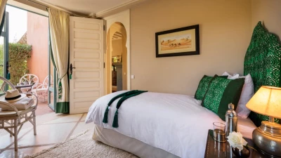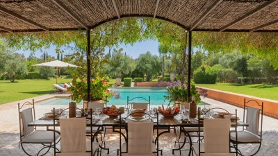 The king size master suite is exclusively situated on the first floor, with an open fireplace, bathroom with separate shower, and a large dressing room. Doors lead out to a private terrace overlooking the gardens. The villa is ideally located for exploring both Marrakech and the Atlas Mountains, and the House Manager will be happy to assist with arranging any trips. The villa is fully staffed to help provide for your every need. The maid will be available daily, while the excellent cook is on hand to prepare breakfast each day, along with all other meals you may require.
