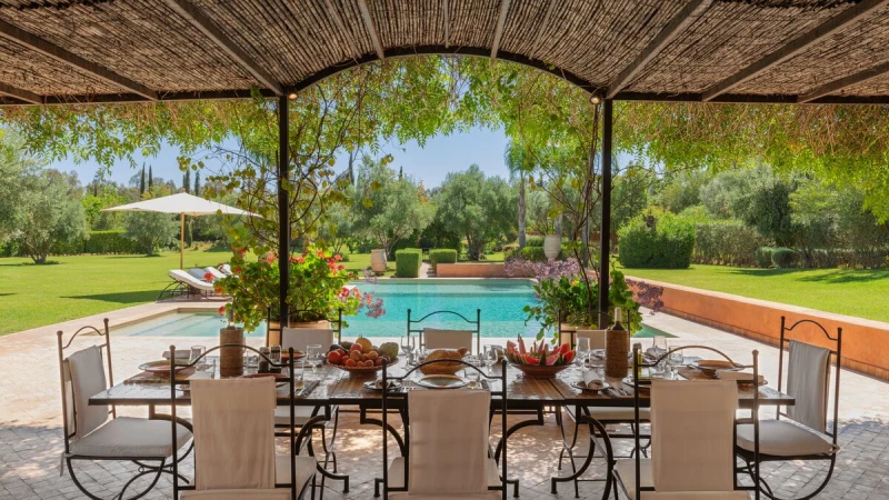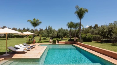 This sumptuous villa with inclusive cook service is nestled within two acres of lawned gardens, with stunning views of the Atlas Mountains and within easy reach of Marrakech.