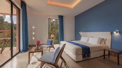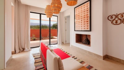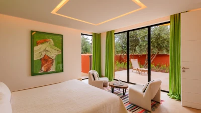 Dar Eazim is an exclusive, private retreat set within eight hectares of beautifully landscaped grounds, just 30km south of Marrakech. With spectacular views of the Atlas Mountains, this small private estate offers the perfect balance of seclusion, luxury, and Moroccan charm, accommodating up to 22 guests across eleven elegant suites.