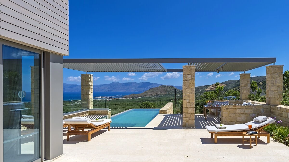 With its own pool, spa and fitness room complementing contemporary comfort, this luxury villa in Cre... -