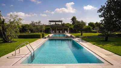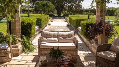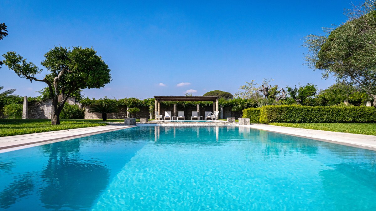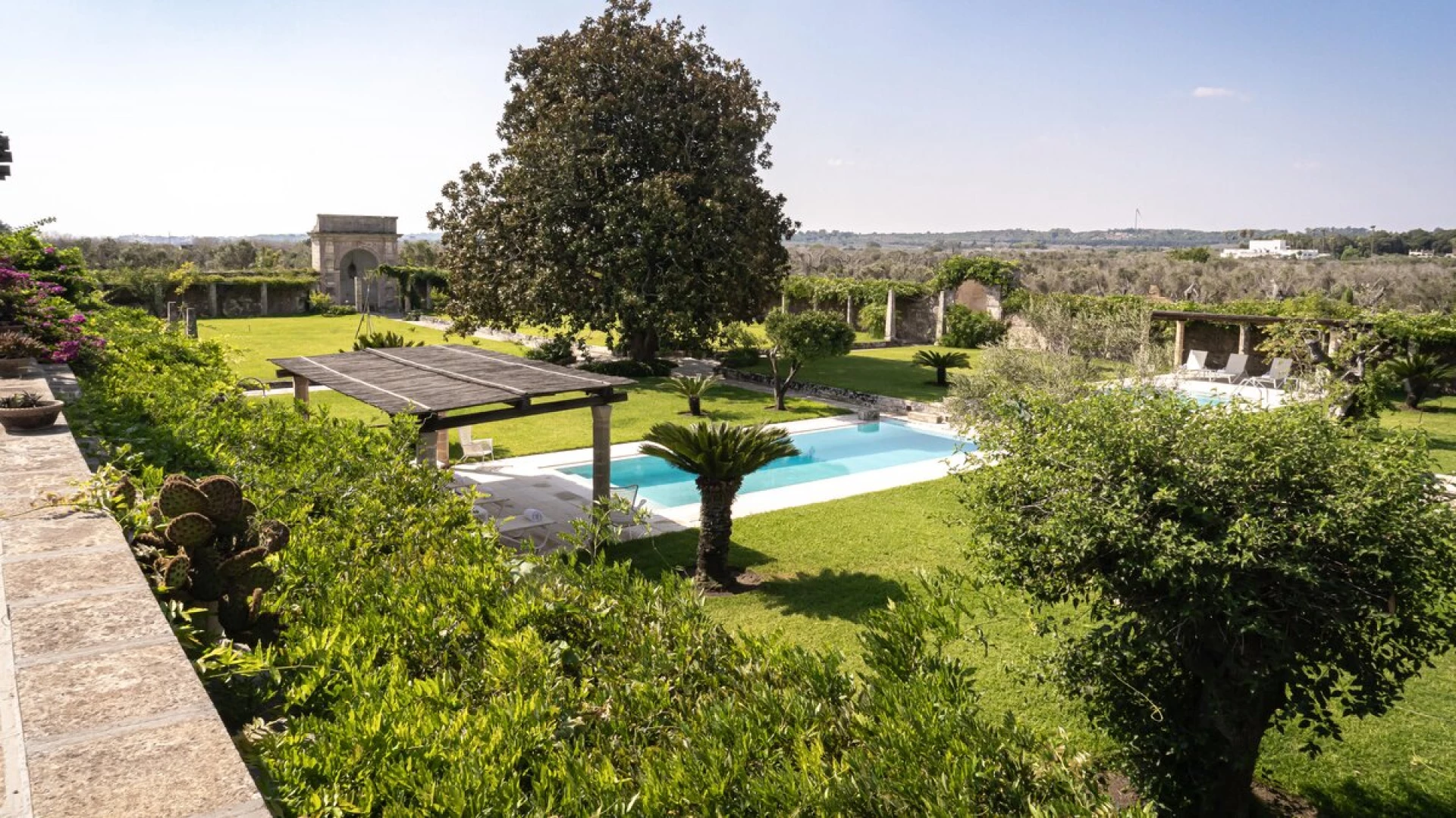 Outside guests can make use of the large private pool and all of the manicured gardens that surround it. Also situated in the grounds, is a shaded lounge area and al fresco dining space complete with built in barbecue and preparation area. Just a ten minute drive away, amenities such as shops, supermarkets, restaurants and tennis courts are on hand in Tricase, alongside a sandy beach.