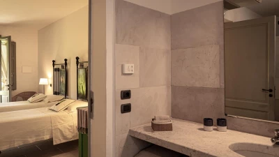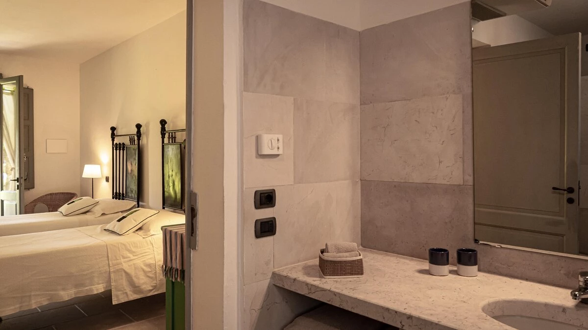 To the side of the main building, the stables hold all the remaining bedrooms. The former stables (have 4 twin bedrooms (which can be made up as doubles upon request), a more compact twin bedroom (best to be used as a double) facing the pool and 1 double opening to the parking area, all with shower rooms en suite.