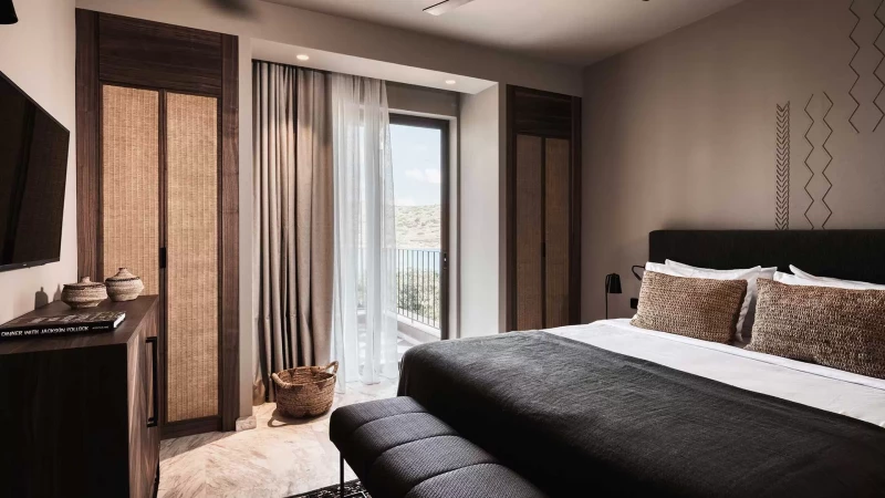 All accommodations feature marble bathrooms, luxury amenities, and outdoor spaces designed for serene moments under the Cretan sun.