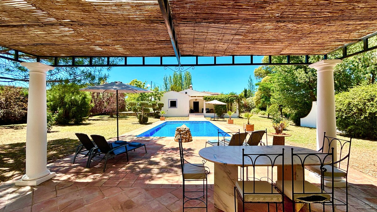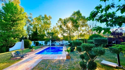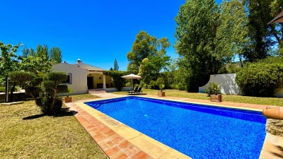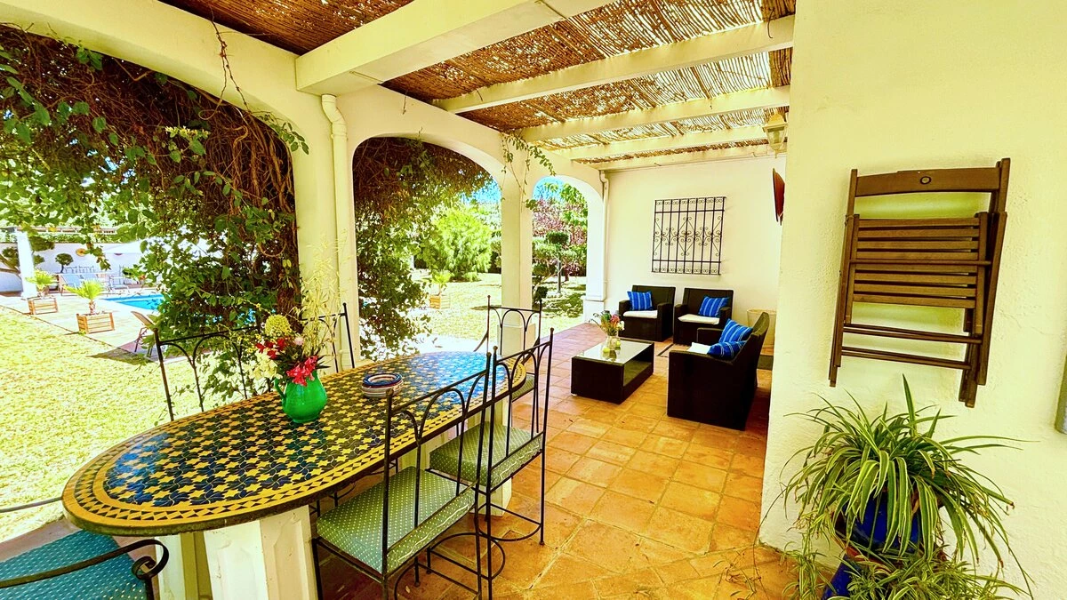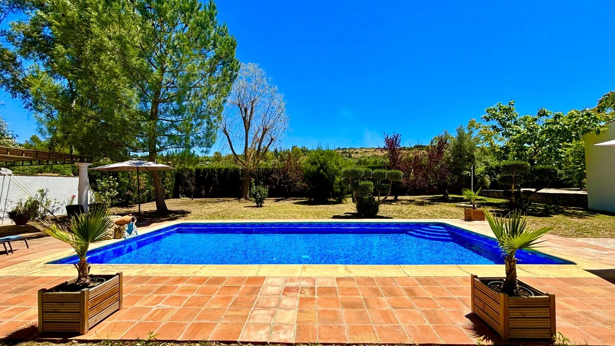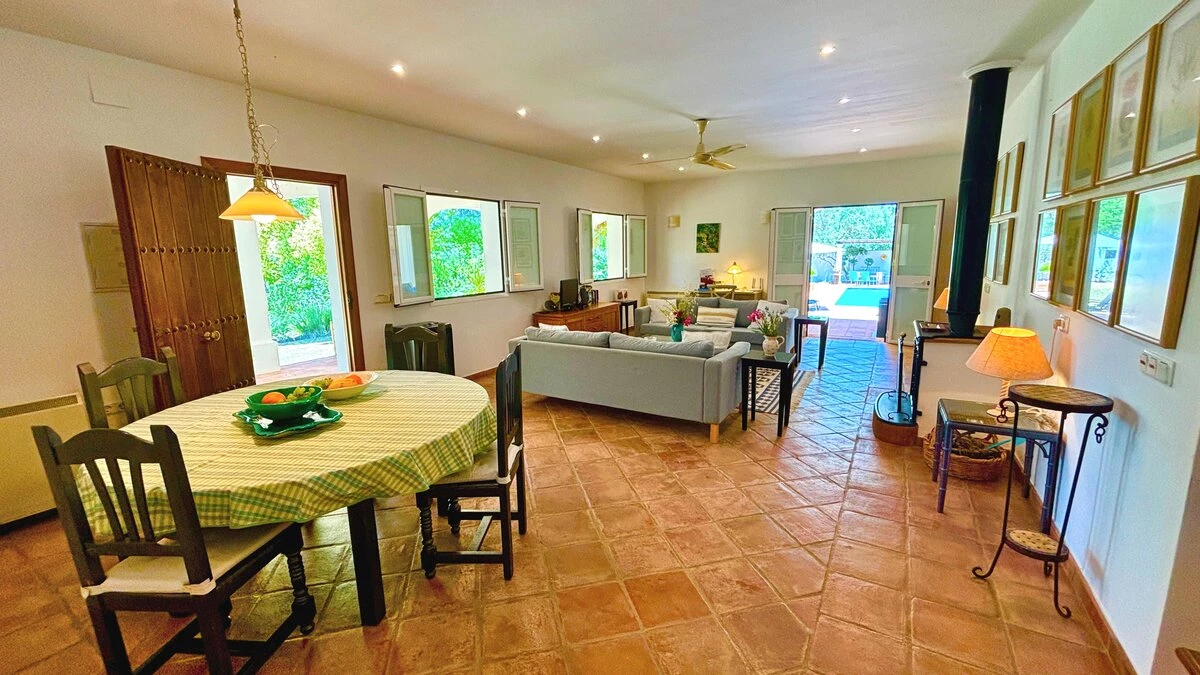 Well-kept lawns and graceful trees surround this cheerful family villa, forming a natural cushion of privacy and framing an inviting ten meter swimming pool. At one end of this, a lovely poolside pergola provides a shady space for long and leisurely al fresco lunches. At the other end is the villa itself, raised a few steps above the garden and opening on to a second dining or sun-downer terrace. Simply furnished, with an open-plan sitting/dining room, and three en suite bedrooms, El Laurel is certainly large enough to comfortably accommodate a family, yet its intimate and informal atmosphere makes it equally attractive as a hideaway just for two. It shares three acre grounds with the smaller villa La Rondita and large Finca la Alameda house if confirmed in conjunction. Booked together with one (or both) of these, it becomes a fine choice for two families or a group of friends holidaying together, and cook service could be the icing on the cake. Rural but not remote, the villa is just 5km from Ronda.