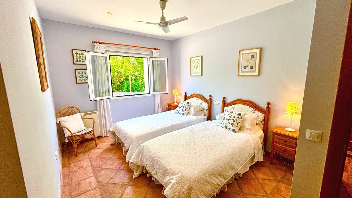 A peacefully private villa, in its own spacious garden, this charmingly rustic cottage shares the Finca la Alameda estate with two other houses, and enjoys spectacular views over the Serrania de Graza