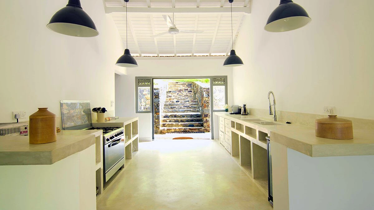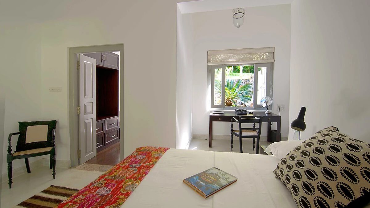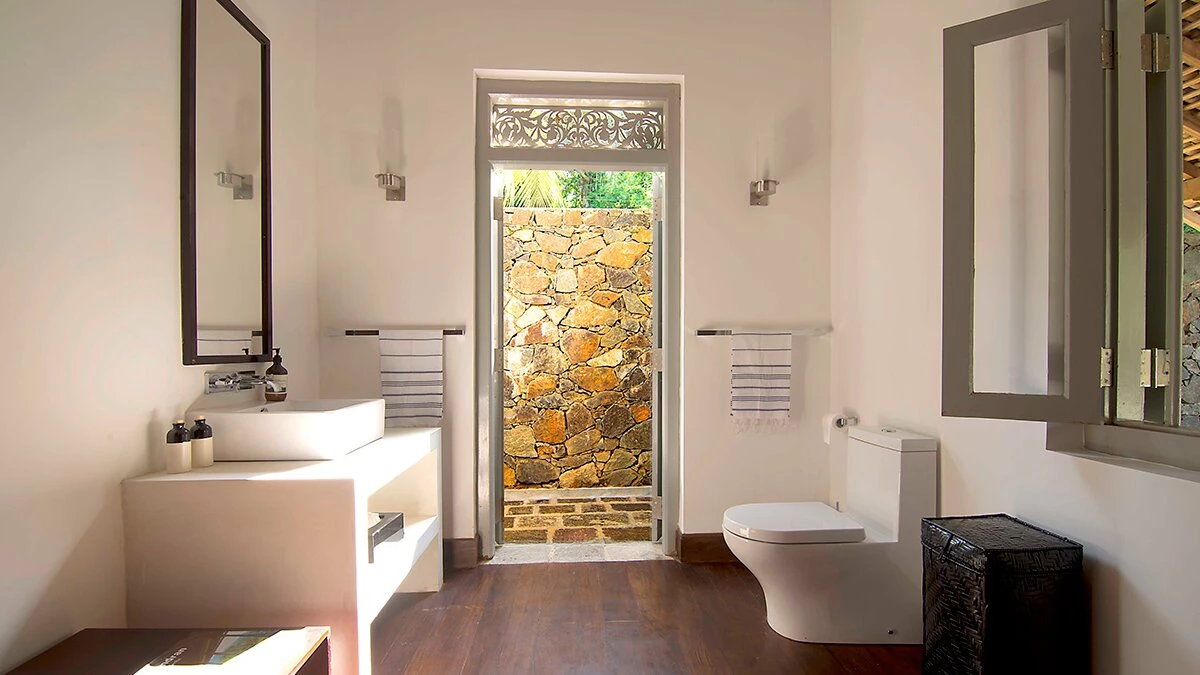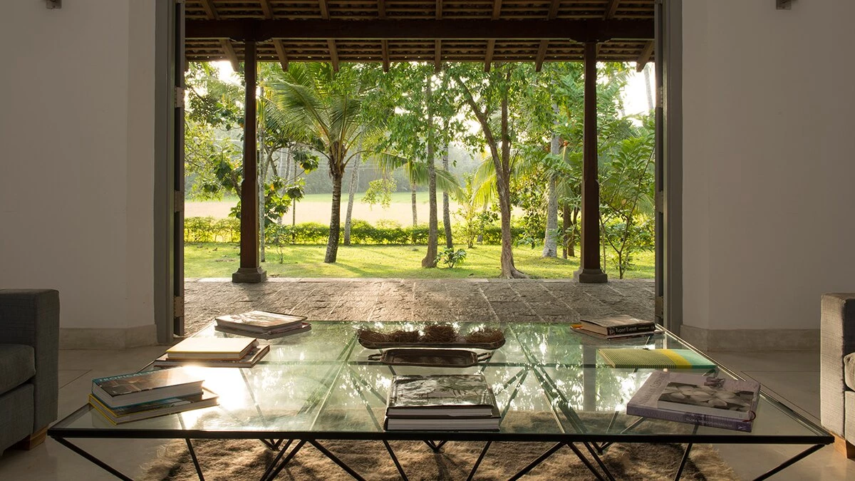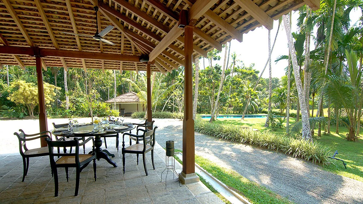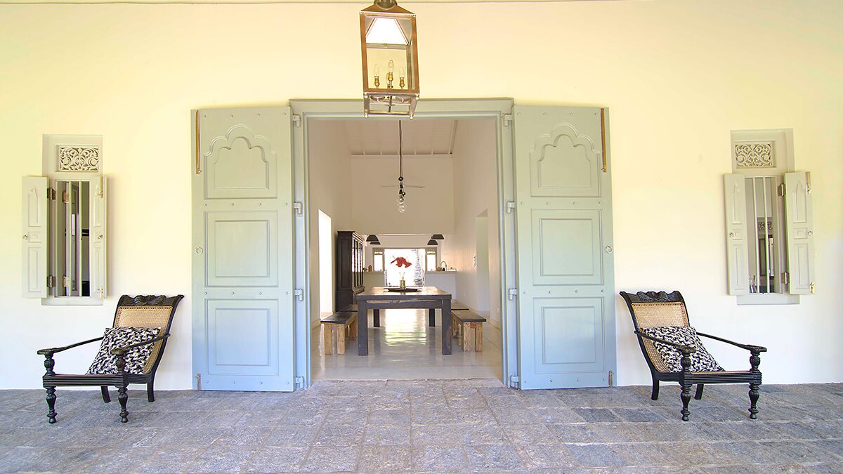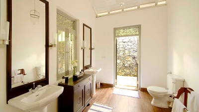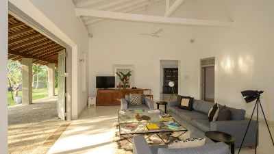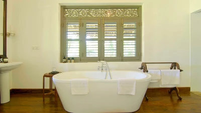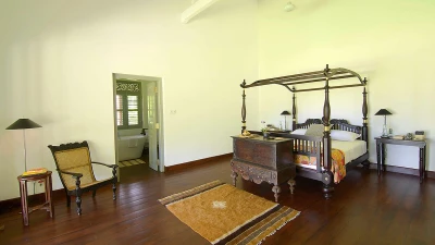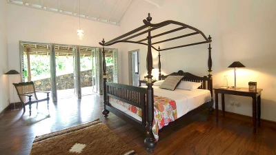 Tucked away in a perfectly peaceful location overlooking the vibrant paddy fields of Galle, Elephant House is a dreamy combination of cutting edge design and optimum comfort. Its location is truly atmospheric in the heart of southern Sri Lanka, yet only a short drive to the closest beaches. Passing along the large veranda, the first room in the villa is the stylish sitting room that has a large sofa and armchairs, with retractable shutters that can be fully opened to reveal the wide screen panorama of the surrounding rice paddies and a welcome cooling breeze. Running through the centre of the house is a sleek space, housing the kitchen and indoor dining area. The dining table sits on the paddy side of the house, allowing for atmospheric dining; on the other side is the well-equipped kitchen. Leading from the sitting room are the two queen bedrooms with outdoors showers; antique finishing touches, such as fans and typewriters add a certain romance. There are two beautiful master suites with four poster king beds. Both rooms are en suite - one has a bath, while the other has an ambient double outdoor shower.