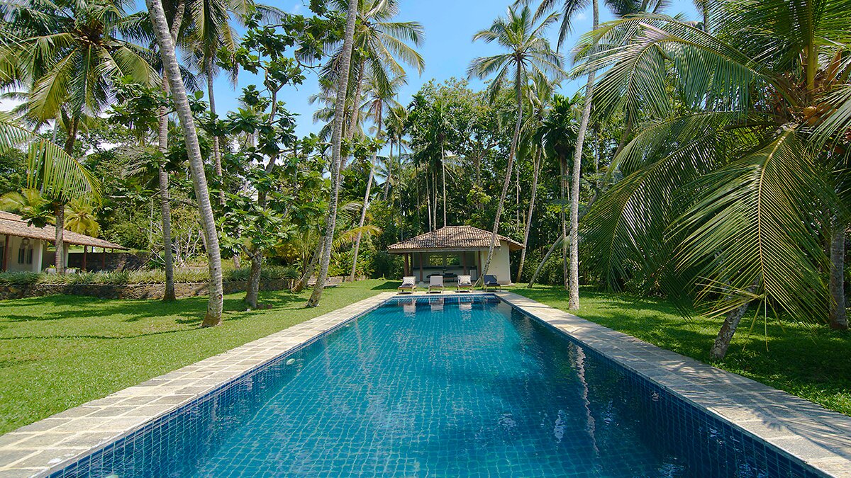 Outside, the huge 18m long pool runs perpendicular to the paddy and is perfect for swimming laps. The poolside pavilion is a wonderful open space, great for practicing yoga and enjoying a barbecue prepared by the in-villa chef. The chef specialises in excellent Sri Lankan cuisine. A holiday at Elephant house can be as relaxed or active as you wish. Learn how to make hoppers and curries with the villa chefs. Head to the beach to relax or go surfing/bodyboarding. Take a guided bicycle ride through Galle’s rural hinterland. Visit a lowland tea factory for tasting sessions and tours. Embark on coastal cruises or whale/dolphin watching in season. Tour the atmospheric streets of the history-laden Galle Fort with excellent restaurants, boutique shopping and sunset views over historic sites. Relax with an in-villa massage or beauty treatment. Go shopping and eat out – the local team will be pleased to recommendations. Guests have very much enjoyed this property, early booking recommended.