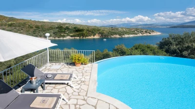A wonderfully comfortable luxury villa in Lefkada, with magnificent sea views from its secluded seaf... -