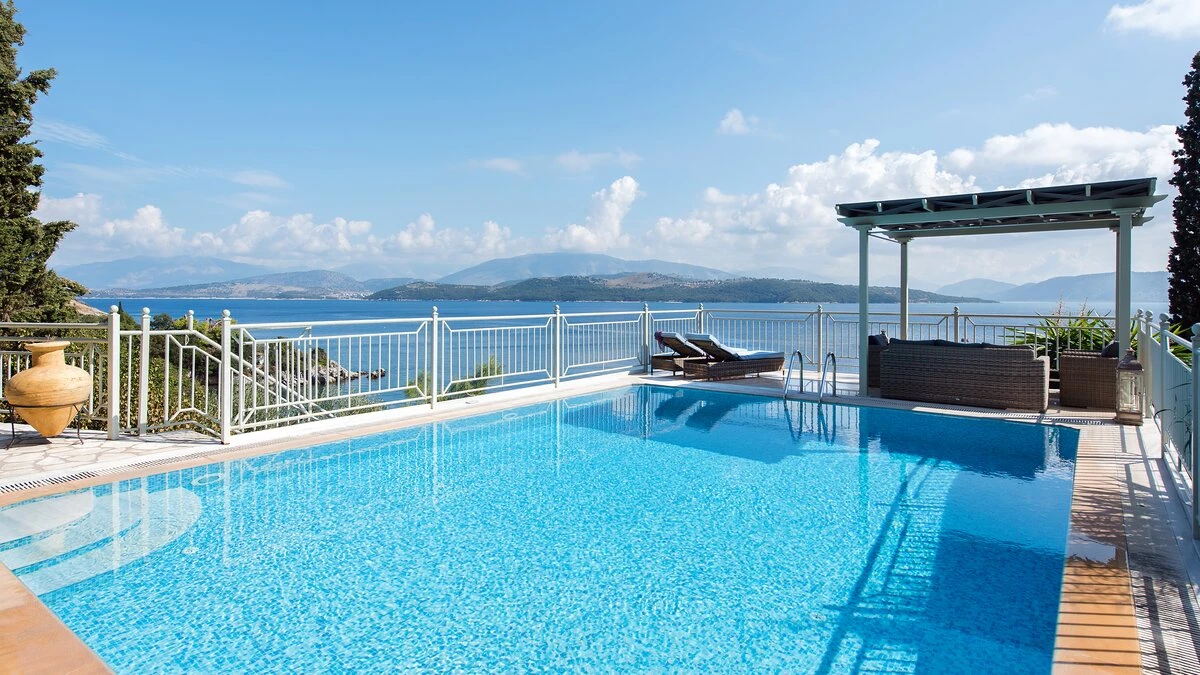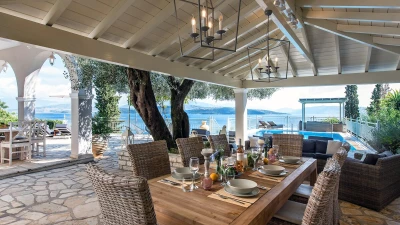 In a wonderful waterside setting, with a pool that feels like the prow of a ship, and rock bathing to the left, this is an unpretentious family villa in Corfu, an easy walk from a choice of beaches.