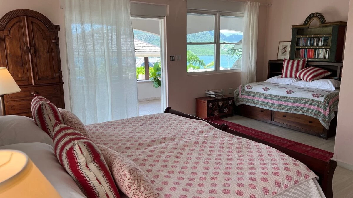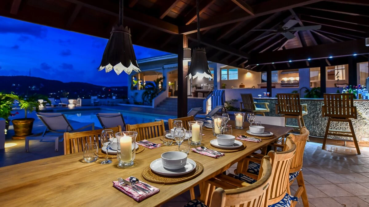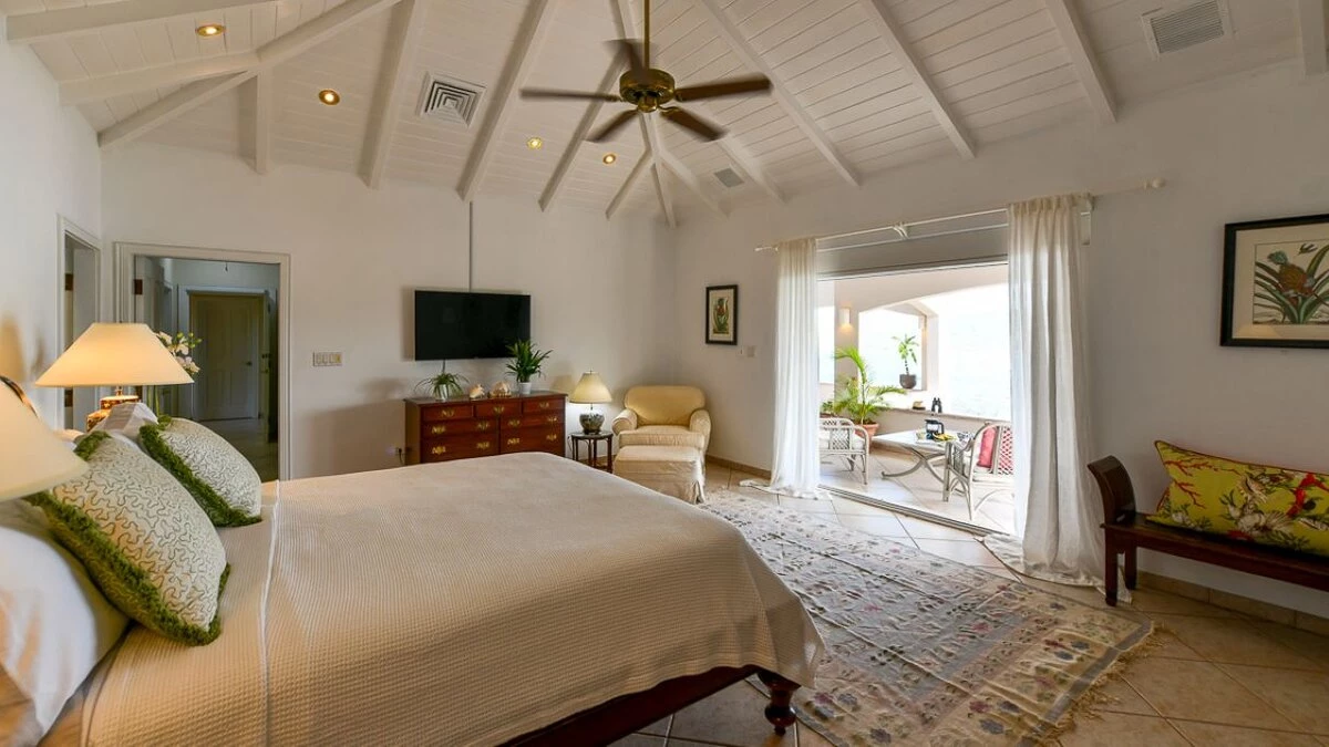 Outside, there is a large private pool that overlooks the handful of boats in English Harbour, an al fresco area complete with bar and barbecue and an additional dining area by the living room, under the veranda.